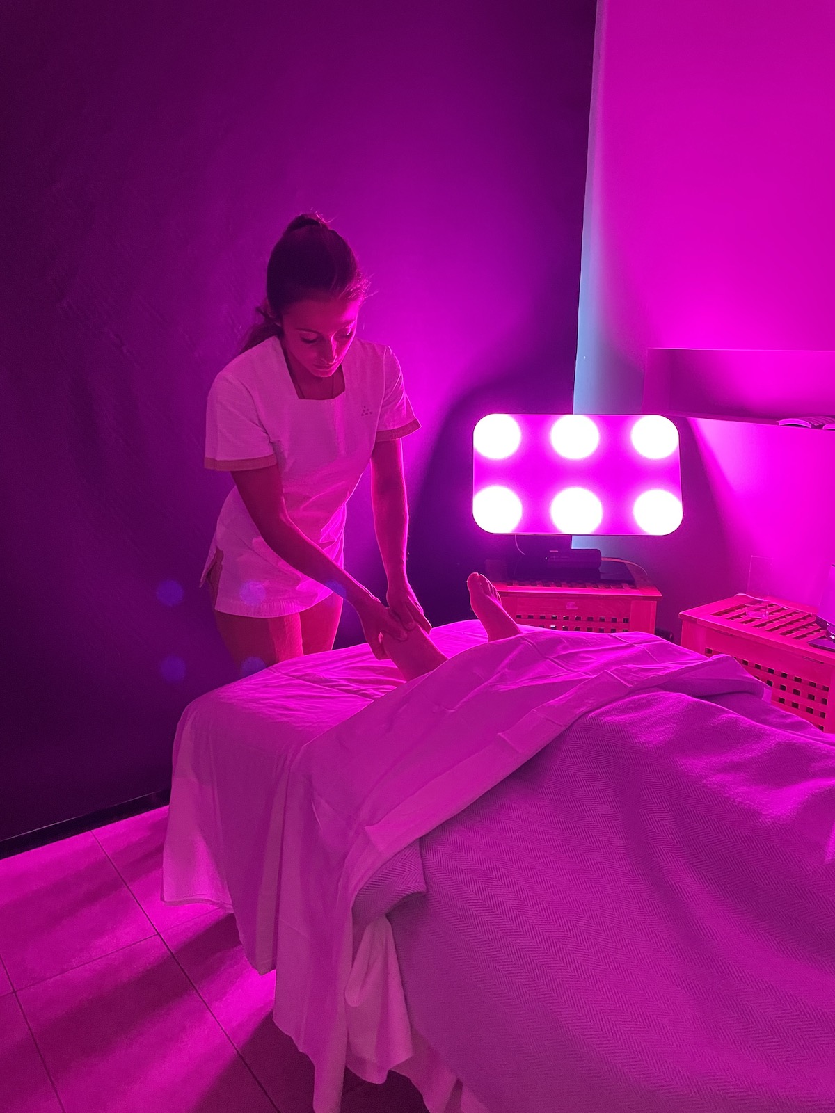 Shortly after checking in, it felt like an appropriate time to partake in my first colour wellness experience. I was invited to a private 20-minute-long meditation session, which was referred to as a ‘colour bath’, a light and sound video projection installation that creates a meditative space for the viewer.