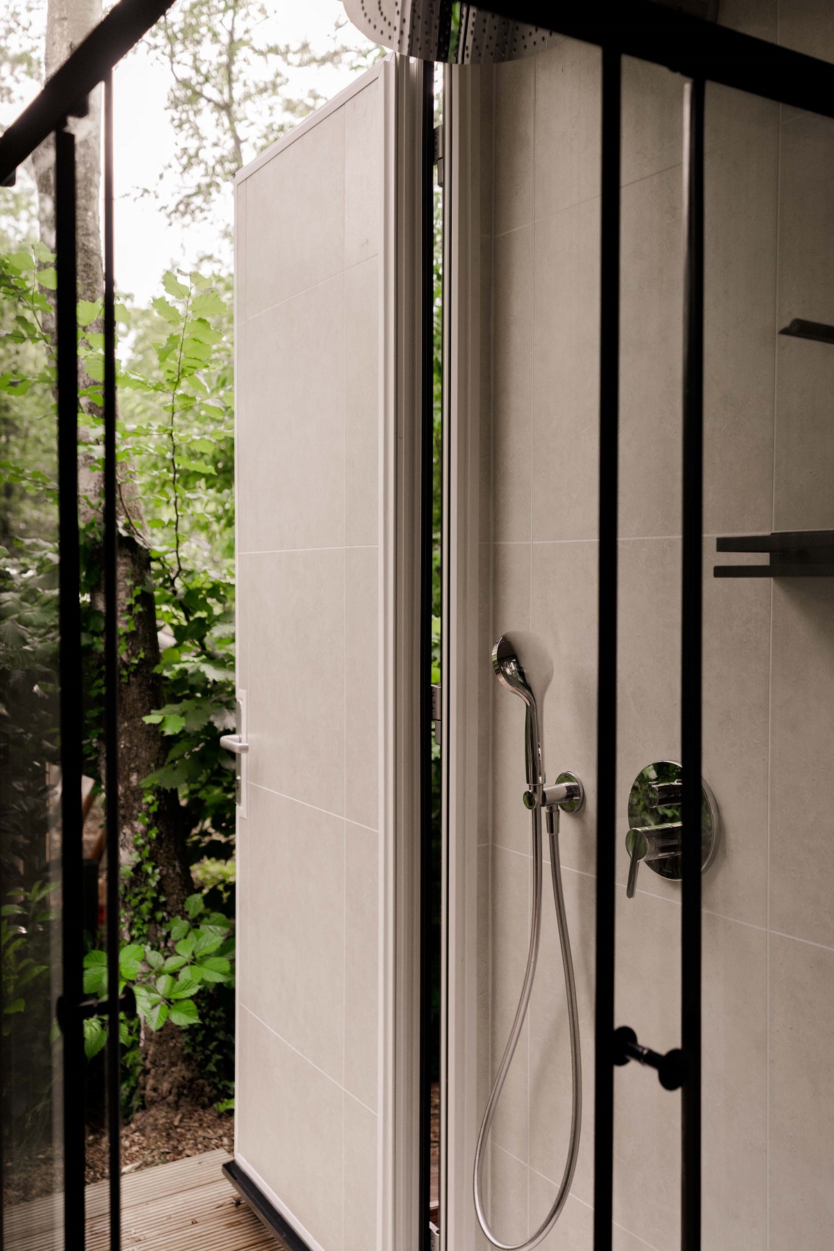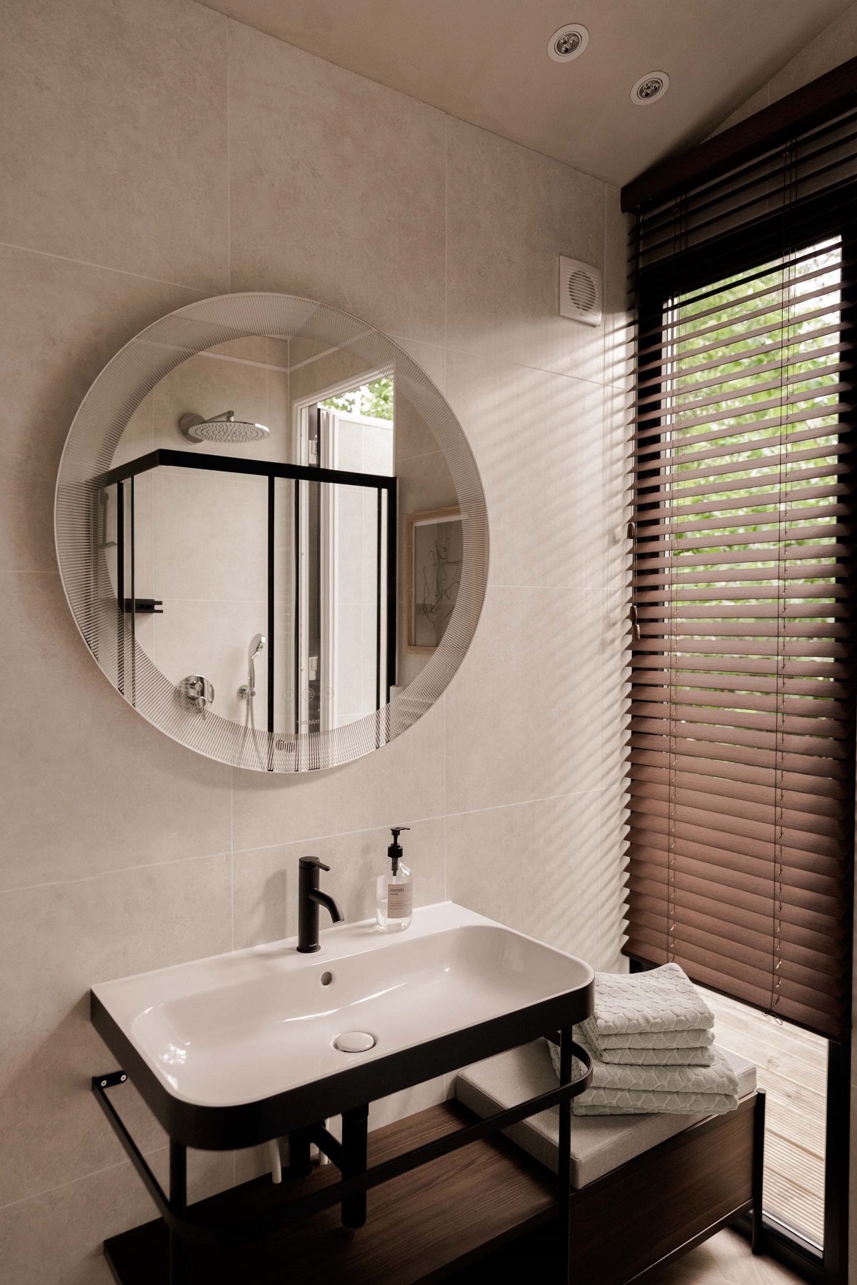 Mori, a property that couldn’t be more connected to nature if it tried, was built using the wabi-sabi approach, which foregrounds seven Japanese principles. The three main concepts of the tiny house are durability, simplicity, and imperfection. The pared-down yet refined interior design extends through to the bathroom where selected pieces from the Happy D.2 Plus collection from Duravit enhance the sense of wellbeing.