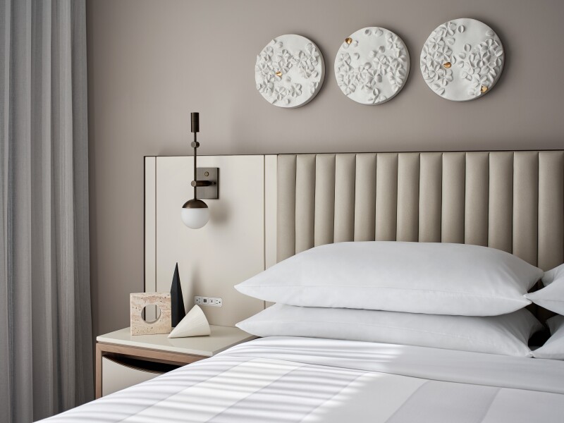 With almost 750-square-metre pre-function and event space, including a private outdoor terrace overlooking downtown Bethesda, the hotel fosters connection for meetings, corporate retreats and social events. Floor-to-ceiling windows infuse an abundance of natural light while abstract design details such as cherry blossom light fixtures and water-colour carpet illustrate the region’s most prominent characteristics. Meeting rooms – innovatively designed to adapt to a variety of formats, group sizes and social events – are named after destinations significant to the company’s history, such as ‘Twin Bridges’, Chicago, Dallas and Atlanta. Customisable catering options feature locally inspired food and beverage breakouts and seasonal banquet items.