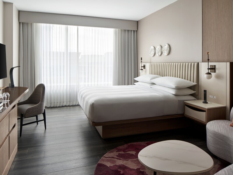 Exemplifying the group’s continued brand evolution, Marriott Bethesda Downtown sparks inspiration at every corner, with a modern, residential design and tailored solutions with locally-inspired accents. The hotel’s contemporary interiors illustrate a curated palette of materials inspired by the region’s natural attributes. Stone and tiles reminiscent of local Bethesda bluestone quarries greet guests at the hotel entrance leading to a grand staircase – the centerpiece of the glass-enclosed lobby brimming with natural light.