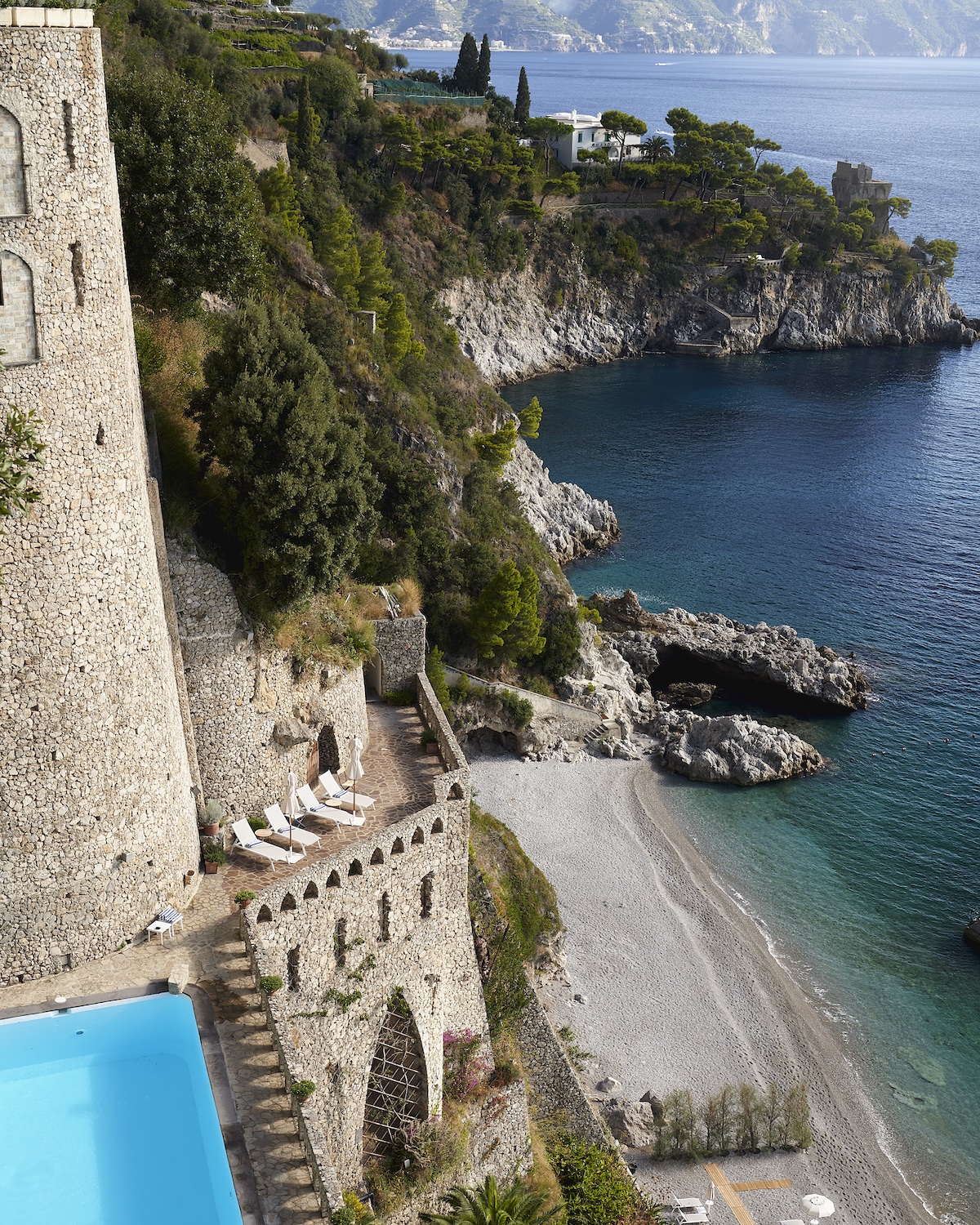 Dangled on a cliff edge (90 metres above the sea), Borgo Santandrea is the first major hotel opening in the Amalfi Coast since 2005, if our numbers are correct. And it doesn’t disappoint, with a uniquely personal, chic and inviting design scheme that feels distinctly residential. Overlooking historic fishing village of Conca dei Marini, the boutique hotel, which actually completed last year but due to the pandemic has waited until now for its anticipated grand opening, is the ‘passion project’ of two Italian families, drawing on several generations of hospitality experience.