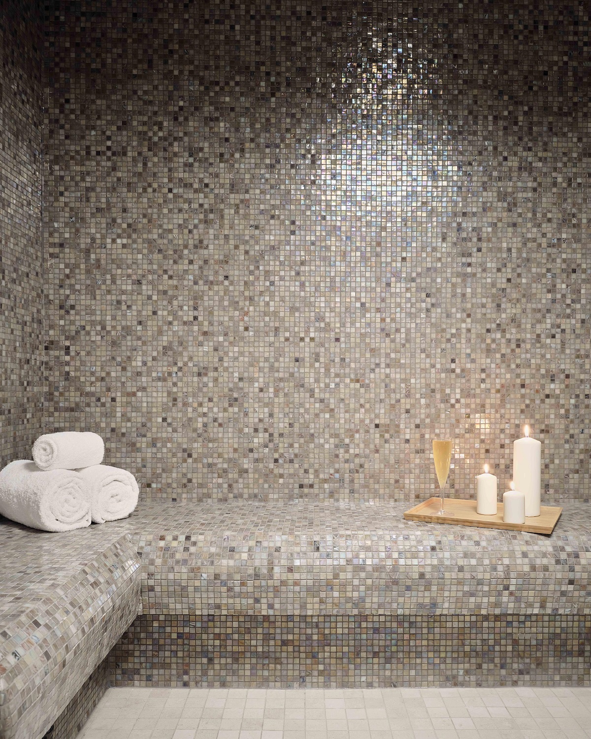 Upon entry to the spa reception, a large-scale agate commissioned from artist Amy Rader anchors the feature wall with grounding presence, inviting balance and harmony into the space. Gold-toned accents recall the warmth of the sun, while smooth finishes provide a transitionary moment for guests. Journeying further into the spa experience at large, variance in texture realises gentle, soft-spoken change, celebrated through playful applications of light.