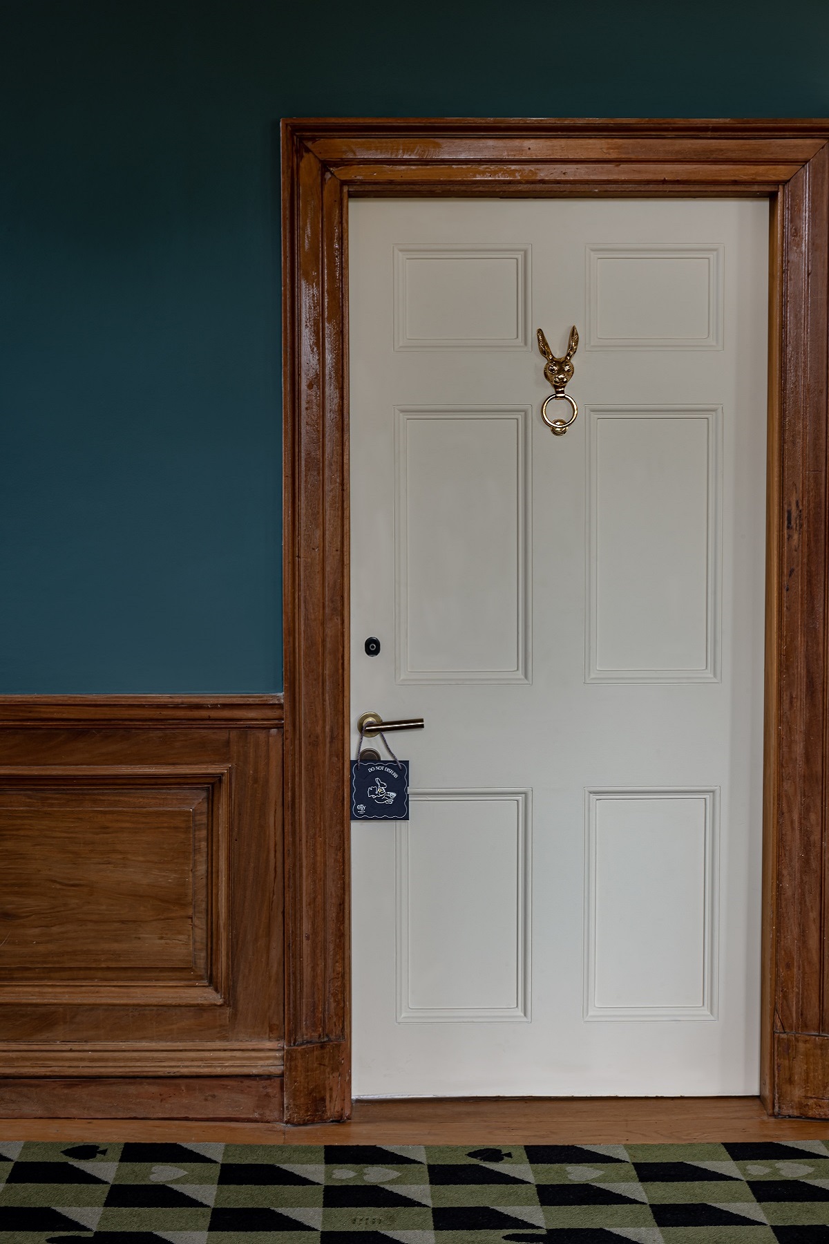 Touches of rattan, mixed with bold colours and glossy lacquer and statement lava stone feature throughout, alongside nods to Lewis Carroll’s iconic Alice in Wonderland: a small hidden door here, White Rabbit door knockers there, and an entirely bespoke checkerboard carpet throughout.