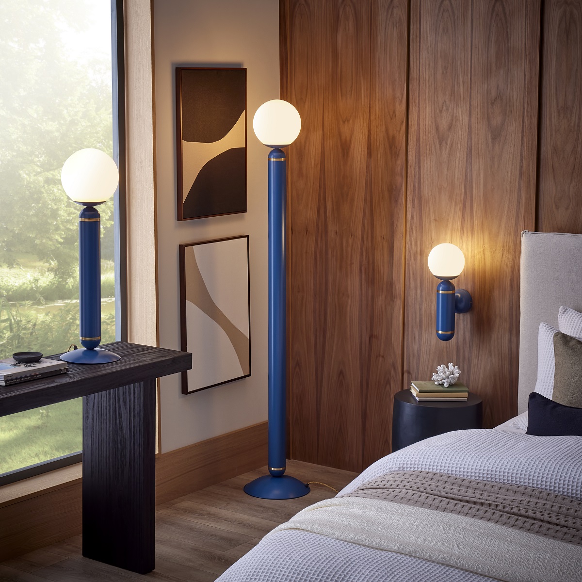 Heritage colours are given a contemporary update in the Novara floor, wall and table lights. Designed to appear as if the glass globe is effortlessly floating above, a rich and glossy azure finish – reminiscent of tranquil Mediterranean waters – is heightened with brushed brass rings to the curved frame. A threaded mechanism allows for simplistic maintenance and replacement, offering increased longevity as part of the brand’s commitment to circular design and the ‘right to repair’.
