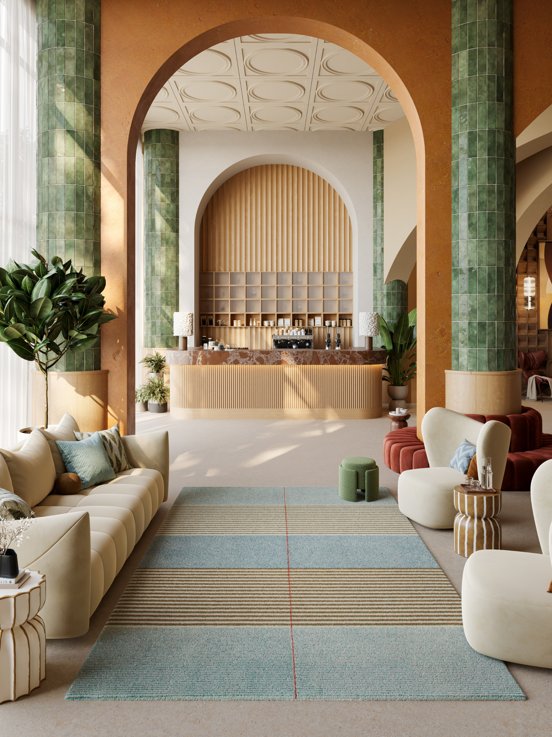 Design at Ulster is a collaborative journey. Their teams work closely with designers, architects, and specifiers to shape carpets that complement and elevate an interior concept. Every project begins with imagination, and Ulster’s role is to translate that vision into a woven reality. Through a storytelling‑driven approach, they develop designs that harmonise with the broader interior scheme, ensuring that pattern, palette, and texture work in concert with the surrounding materials and architectural intent.