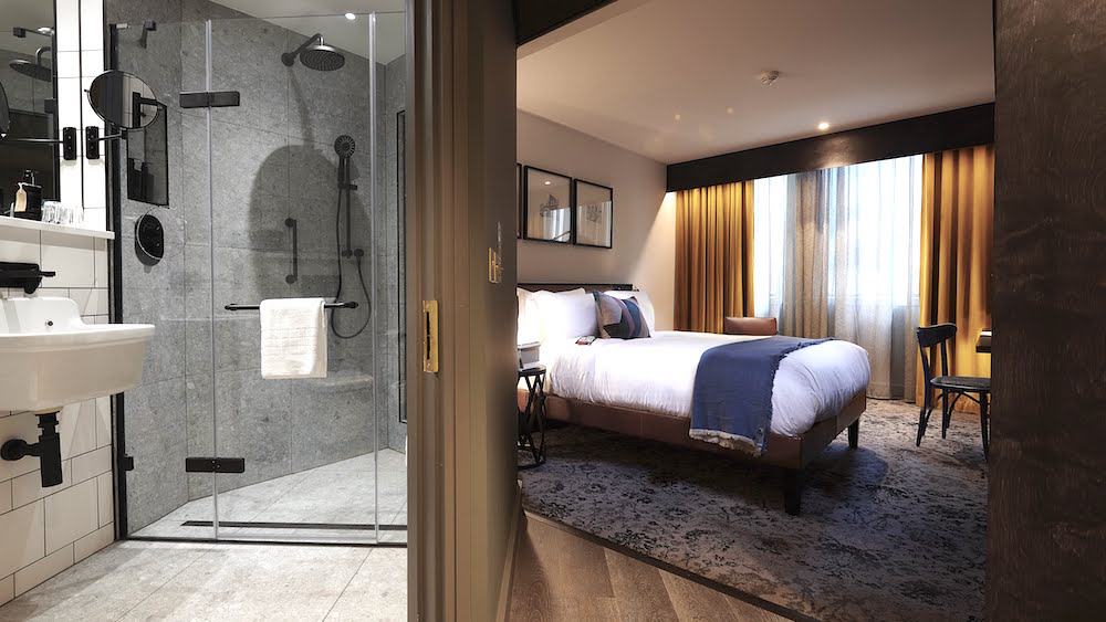 Upstairs, while the 189 rooms are impressively designed, it is the 18 fully accessible suites that set the hotel aside from others. With Bespoke Hotels being award-winningly famous for pioneering stylish accessibility in hospitality for all, the group turned to Motionspot, the UK’s leading accessible design company, to help delicately balance style and functionality. “Accessible accommodation at Hotel Brooklyn features subtle details like basins with integrated hand grips, removable matt black grab rails, accessible bedroom storage and a hidden ceiling track hoist”, said Ed Warner, Founder and CEO of Motionspot. “We hope this high level of attention paid to inclusivity will make Hotel Brooklyn one of the most sought-after venues for guests of all abilities.”