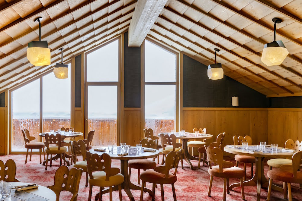 The creative genius behind the project who in just three years sensitively created the 55-key new-build hotel, from a piste ski route into the jewel it stands as today, is Pierre Yovanovitch. The fashion designer who turned architect/designer was recently crowned Wallpaper*’s Designer of the Year 2019. He joins me for breakfast during my review of the hotel in the property’s Bianca Neve restaurant. Together, we discuss overcoming project obstacles, working to tight deadlines as well as the key moments that have shaped his abstract career.