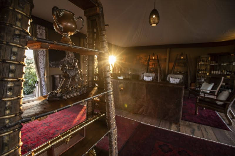 Here, I added my own collection of campaign furniture as templates and samples for cabinet makes to replicate, which happened at the time of the Indonesian tsunami where thousands of artisans were left without work, and where tons of mahogany used for houses were smashed down from house scale to ideal furniture scale. So we used the reclaimed mahogany and hired the artisans to make this campaign furniture that is now unique to Zarafa camp. In other cases we just come across something in a market or antique store that we love and can’t live without, so we don’t!