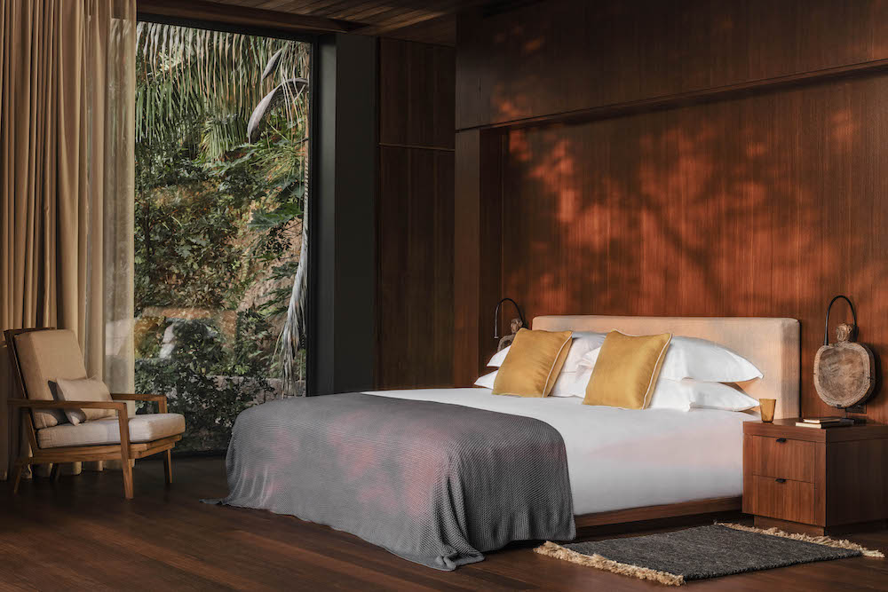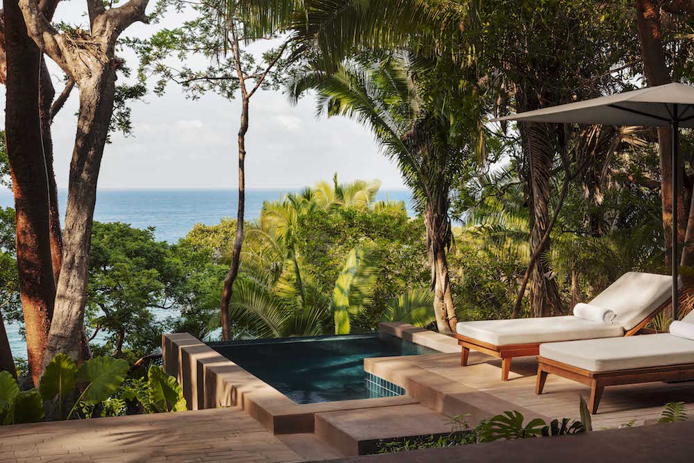 Dovetailing with the dramatic scenery, resort bungalows, pavilions, and cabanas are nestled in coastal vegetation and all boast views of the aquamarine ocean, with suites offering fully-furnished kitchens and living rooms, perfect for larger groups, large patios, plunge pools, freestanding soaking tubs and outdoor showers.