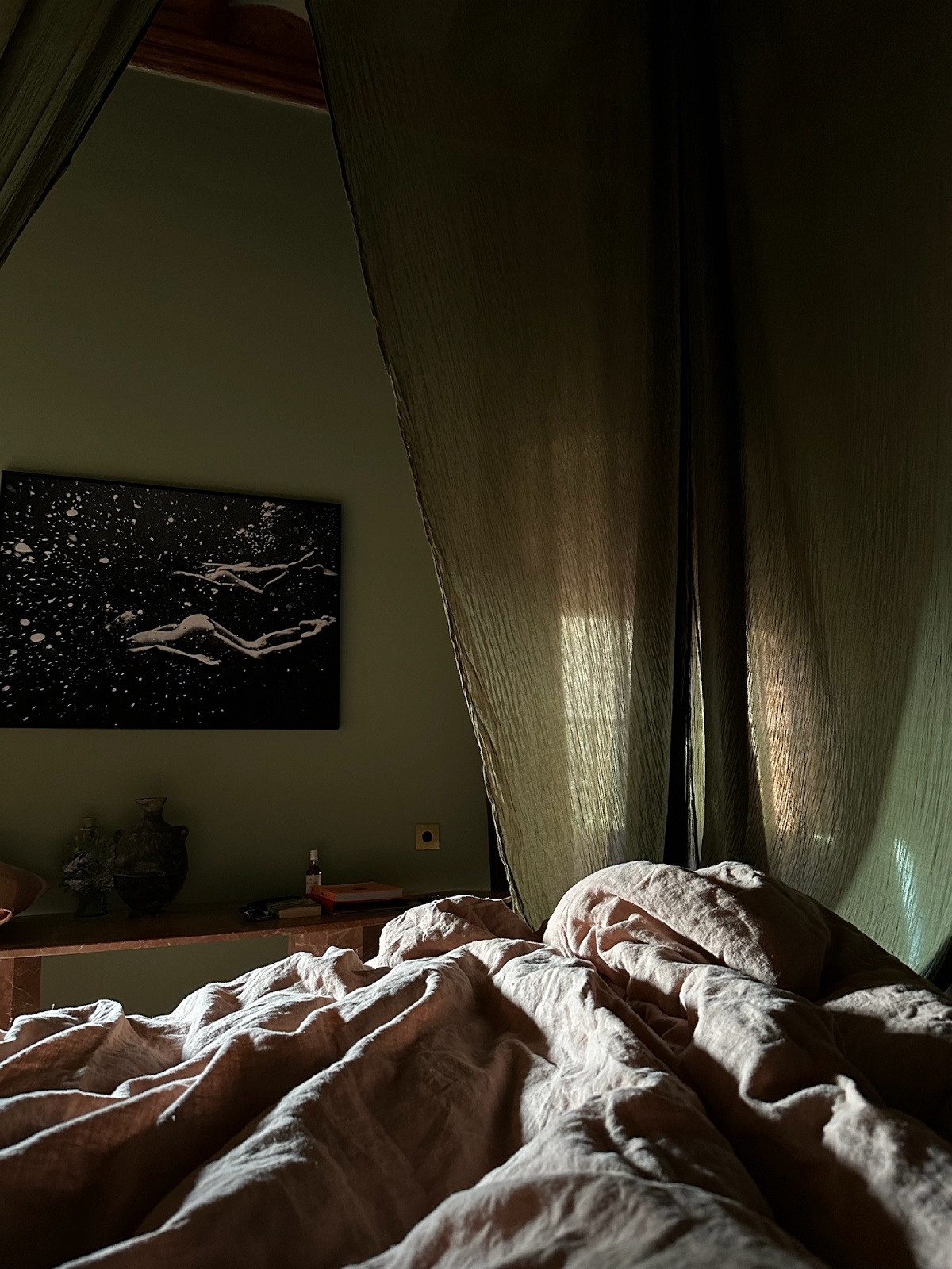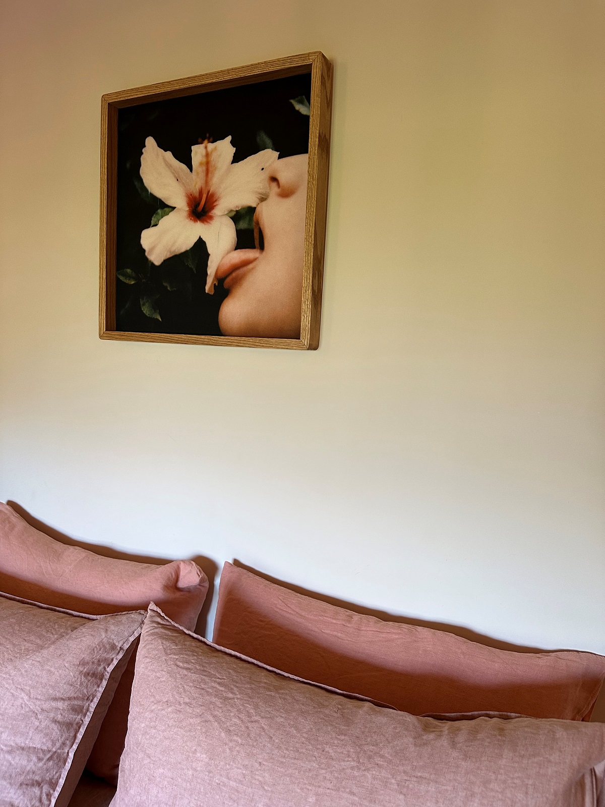 bedside light, linen and art in The Rigg End