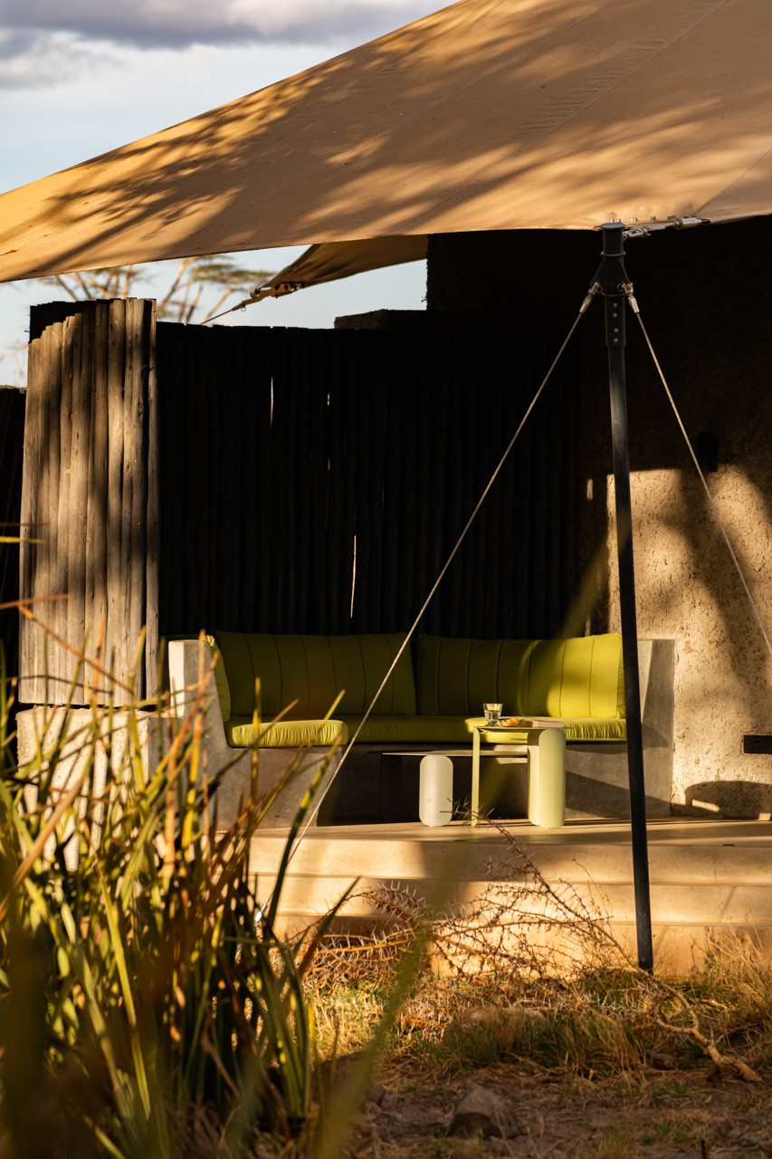 Guests can enjoy flexible indoor-outdoor dining in the central Guest Area, with a food concept from chef Sarah Saleheen of Boho Eatery, a restaurant focused on conscious and sustainable food in Nairobi, complete with a baraza for evening gatherings around the fire. The nearby Studios house a safari shop, games room, art gallery, weaving studio and a photographic studio for capturing Amboseli’s iconic scenes.