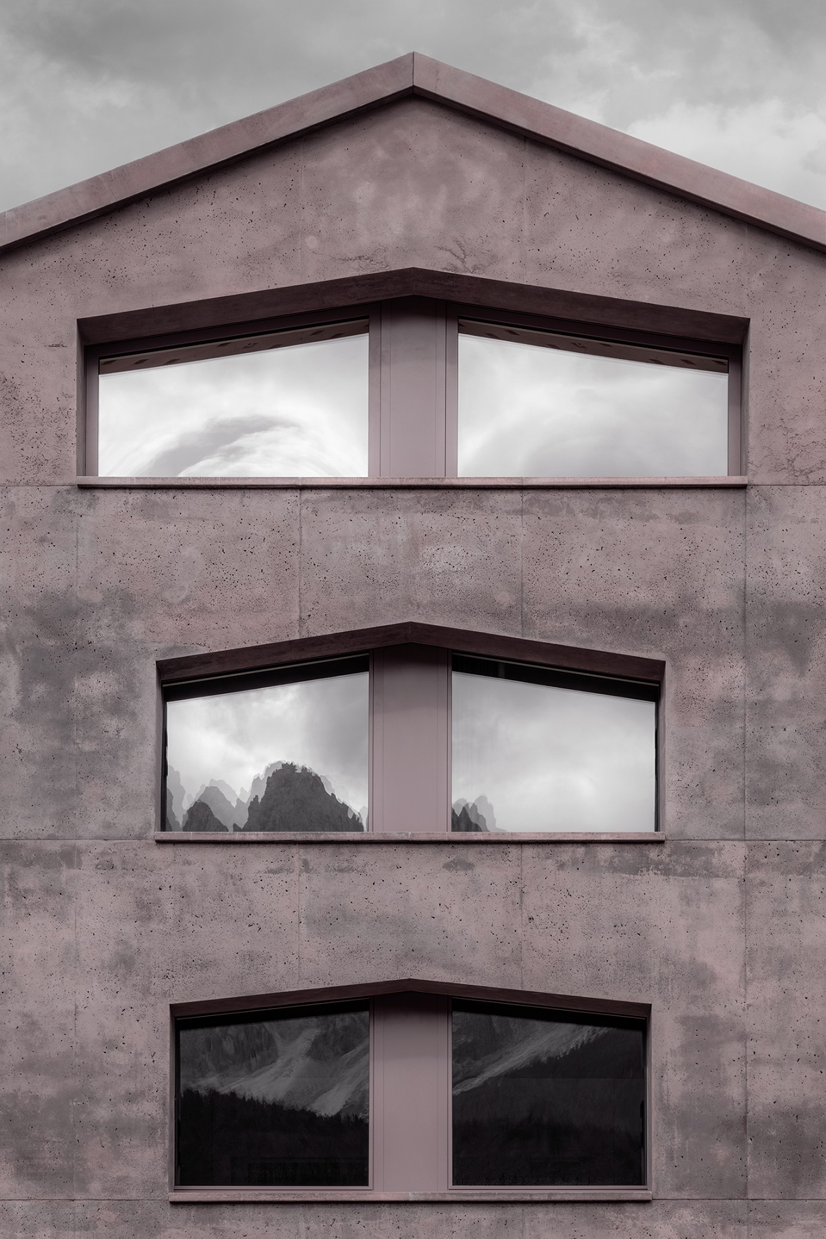 Running through the interiors are strong regional references, such as the recurring use of the rhombus cut-out that diffuses the light, an imprint in roof panels, benches and on the walls, which is a visual reminder of alpine heritage and vernacular presented in a modern format. Elsewhere absence is conspicuous, as Atto confidently highlights the less-is-more aesthetic. The interiors are an almost continuous journey of wood, smooth terrazzo flooring, polished plaster bathrooms and carved-out loggias for views that are big enough to stand alone. The tinted exterior also references the locale, with its colour matching with the rocks found in the Sesto river and one of the area’s most prominent sights – the 12th-century collegiate church of San Candido.