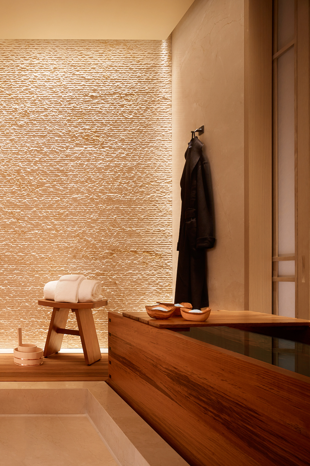 - Image caption: A sneak peek of a bathroom inside the hotel shows a minimalist design scheme. | Image credit: Nobu Hospitality