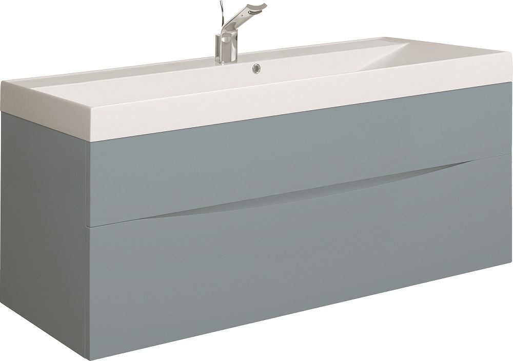 Available in three sizes, the smart wall-hung vanity unit readily embraces modern functionality with its elegantly curved recessed handle and modern angular lines.