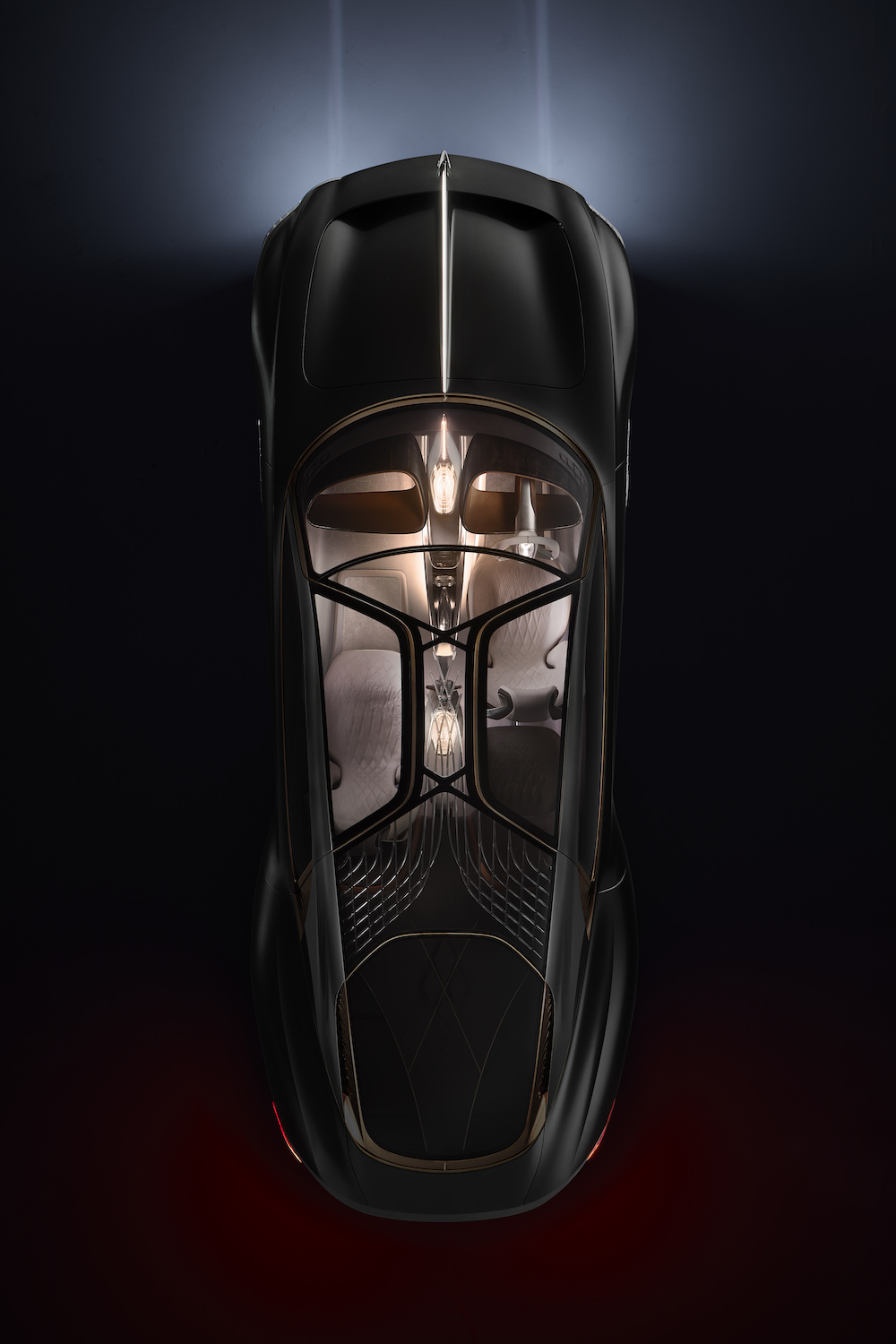 Attention to detail was paramount – the flying B logo required a weeks worth of hand polishing before receiving the tiny bespoke LED component that illuminates its wings. Different approaches were taken for every material – be it the hand woven silk or the 5000 year old river wood. The interior contains two hand blown crystal pieces that visualise the inner workings of the car’s AI. Collaborating closely with Cumbria Crystal, Studio Waldemeyer worked on the 3D design, implementation and illumination of this central feature.