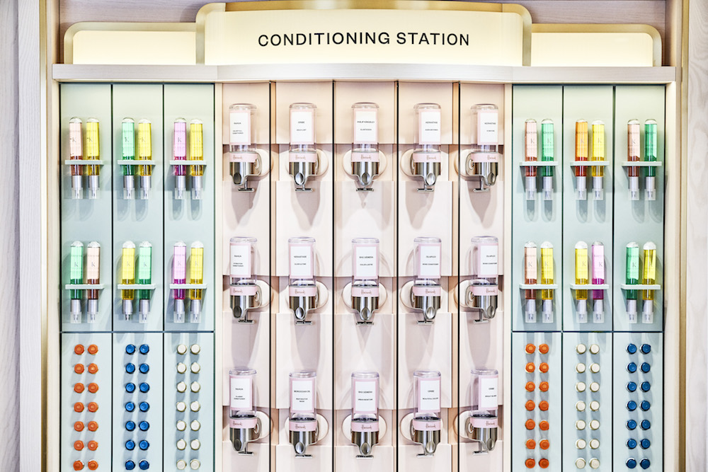 Drawing inspiration from archive photos of previous incarnations of the beauty treatment areas in the store, the hairdressing area also includes a hair extension library, luxury backwash area with a conditioning bar, as well as a more private ‘Salon Privee’ with five hair-stations and its own backwash area.