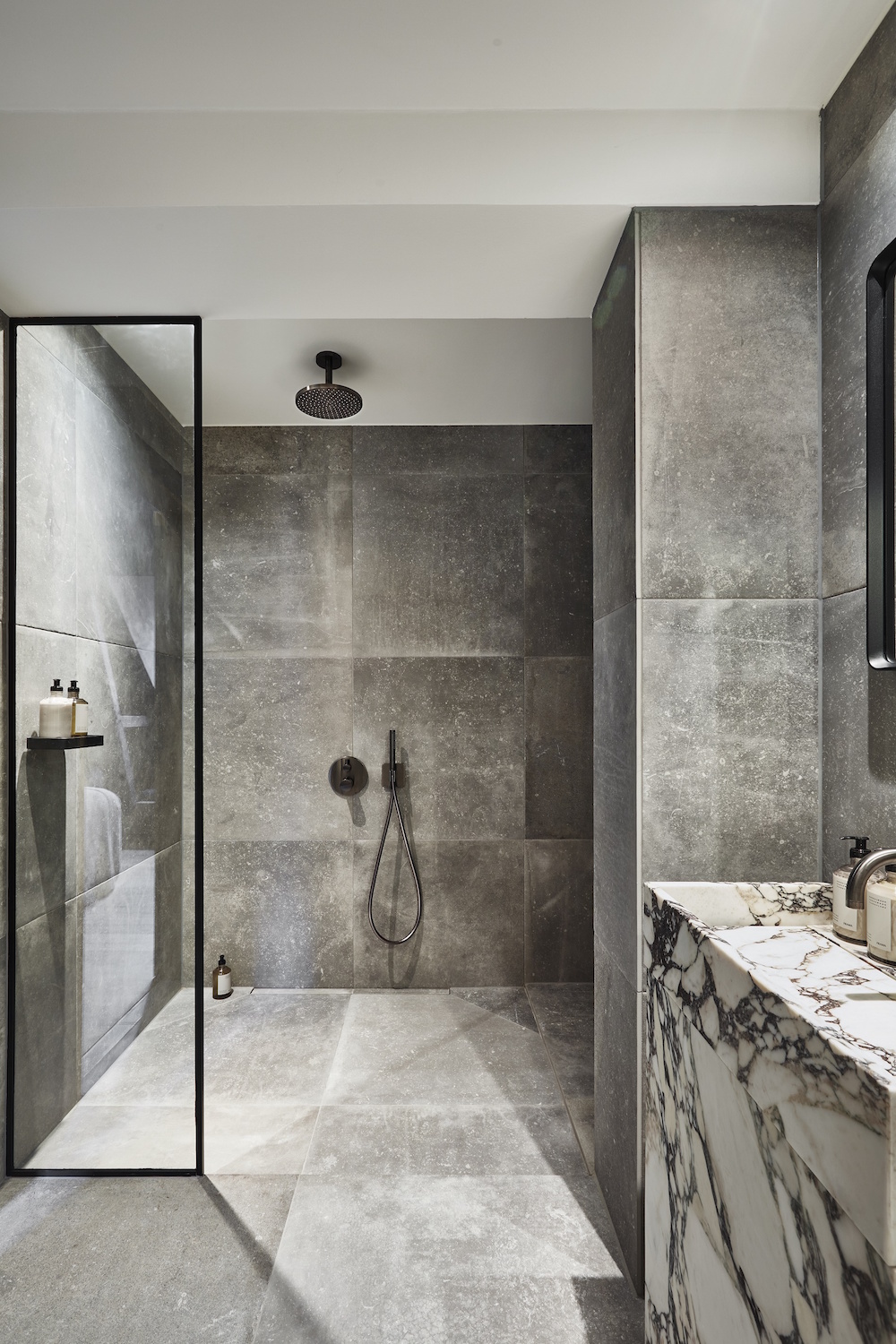 There are 10 suites in total and each of the bathrooms is equipped with Unidrain’s HighLine Custom solution, providing an almost invisible drain that blends elegantly with the large bathroom tiles. Stylish, discrete with a slight industrial air, Unidrain was the only choice for this project.