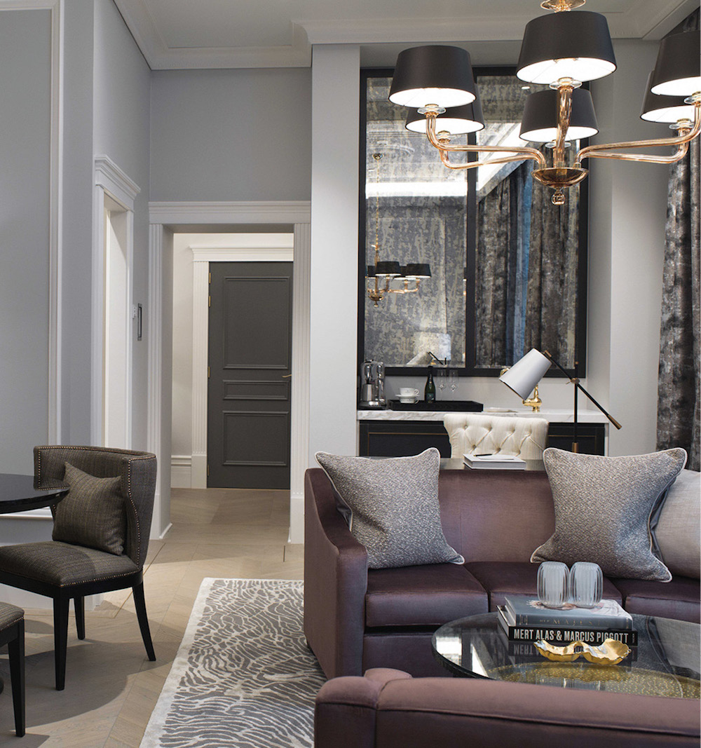 Heathfield & Co’s Czarina Old Gold chandelier forms the central feature of the high-end Signature suite, whilst a pair of Herzog Champagne table lamps draw focus in the inviting conference centre lounge.