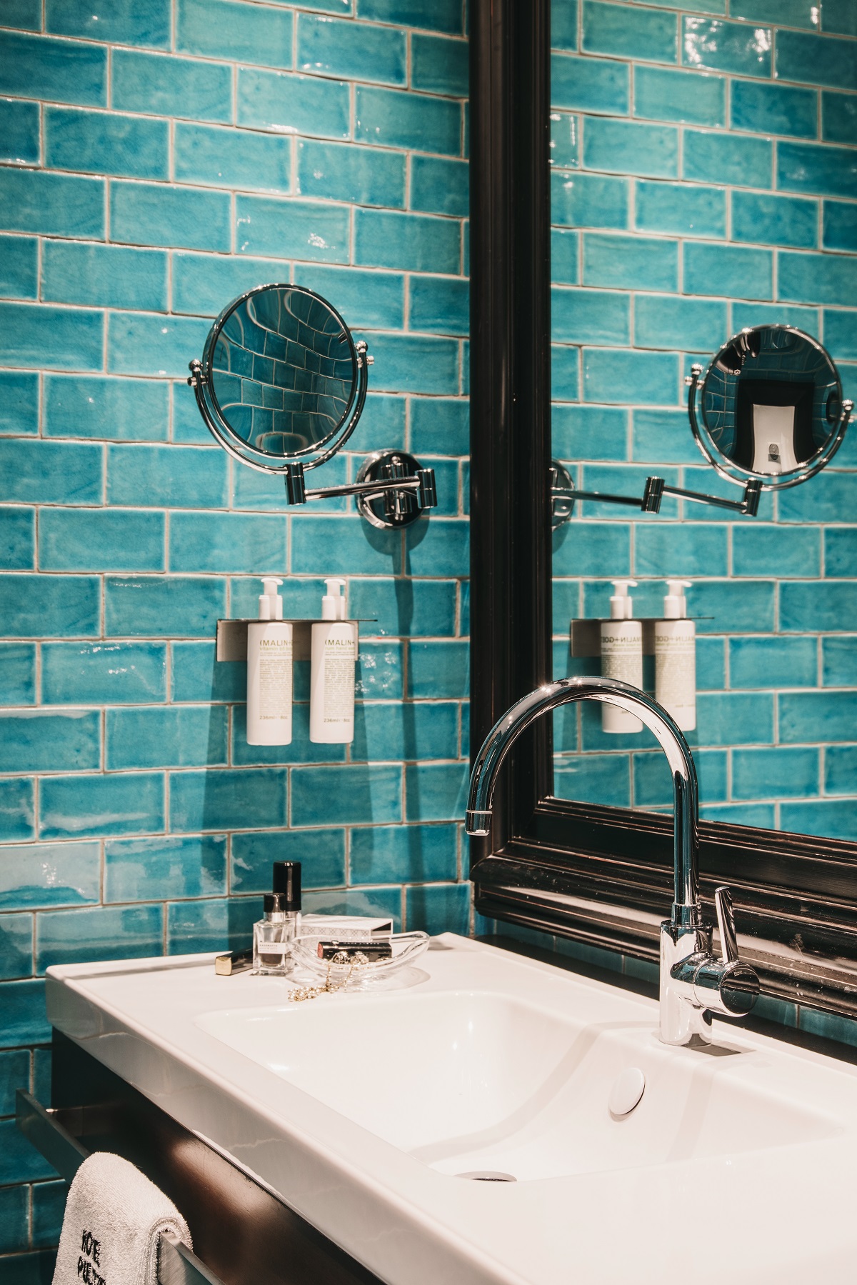 The bold turquoise bathroom added a wonderful blast of colour in contrast to the more modulated bedroom palette – but unquestionably, for me the best part was being able to throw open those bedroom doors onto the perfect Art Deco city balcony, and feel like I was living my best Barcelona life!