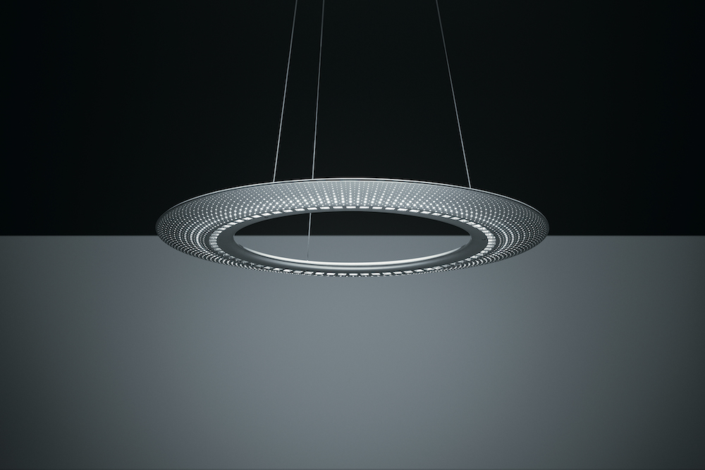 “The light is able to replicate true human-centric lighting and this is a rare occurrence with just a single light fixture,” he says. Its round shape is key, a contrast to the linear form of most office lighting. “It seemed to me a paradox to design a luminaire with straight lines when all natural sources of light such as the sun and moon are spherical. Because it is a circular light, it can make a space glow, like a campfire.”
