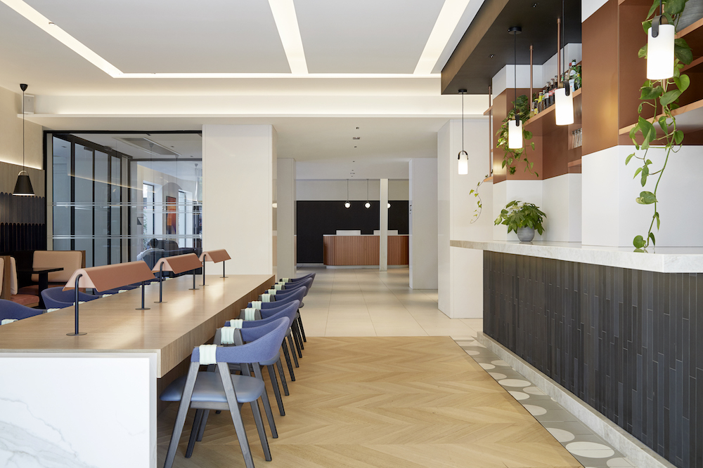 Throughout Plaza Workspace there is an abundance of tech savvy elements: tables feature integrated wireless phone chargers and high-speed Wi-Fi is available to address the growing trend in flexible work and life preferences and people’s desire to work from anywhere. Plaza Workspace also includes The Studio, a bookable-by-the-hour meeting space to cater for private meetings and events, complete with its own bar counter and break-out lounge seating. The studio’s design maximises the flow of guests through the spaces, allowing them to transition seamlessly between work and down time.