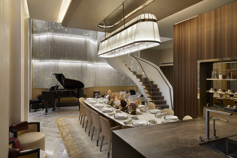 “We are thrilled to be part of the creation of Mayfair Park Residences and to work with Dorchester Collection again,” said Sanjit Manku, Founding Partner at Jouin Manku. “We’ve endeavoured to create a high-end interior with a sense of ease, relaxation, warmth and comfort with a little bit of sizzle and dazzle; a little bit of sparkle. A focal point of the new home is the blending of both natural and warm light throughout with coffered backlit ceilings illuminating the space and a six-metre-high bespoke light installation which extends down to the lower ground floor, melding the two levels together.”