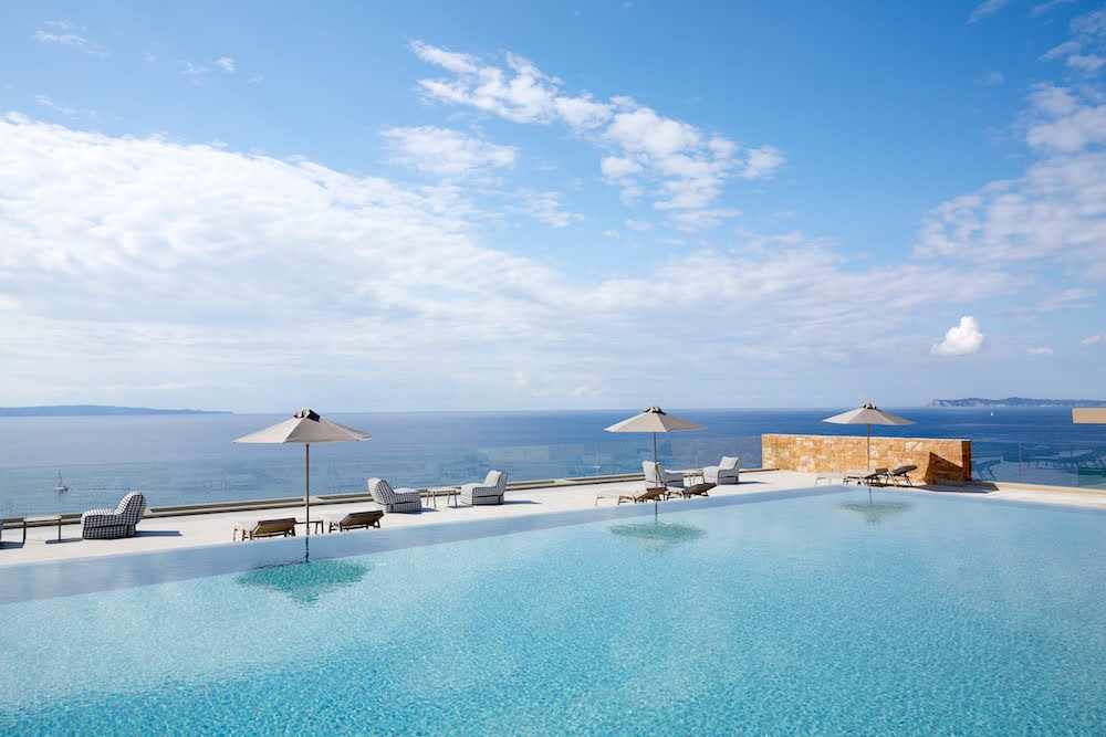 “The inspiration behind the design comes from the breath-taking view of the infinite sea and the surrounding environment,” explained Thomopoulos. “The design of this five-star hotel is now a reflection of the existing materials and styles of traditional Greece, combined with a constant reminder of the beauty of nature.”