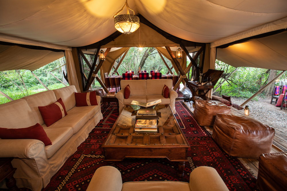 Situated in the Olare Motorogi Conservancy – one of the most iconic wildlife destinations on the planet with unrivalled access to more than 100,000 acres of exclusive land as well as access to the 375,000 Maasai Mara Reserve – Mara Plains Camp, will re-open to guests at the beginning of June after undergoing a full camp refurbishment. Located upriver from little sister Mara Toto Camp, the refreshed camp is completely elevated on high-rise decks and will now offer couples a brand-new honeymoon suite on a peninsula island. The new Honeymoon Suite can only be accessed via suspension bridge offering couples their own oasis of exclusivity and privacy. Designed by Great Plains CEO and co-founder Dereck Joubert, the new honeymoon suite at Mara Plains will have large wooden Swahili doors, paying homage to East Africa’s essence. The spacious open-plan design and décor of the honeymoon suite, also designed by Beverly, will have a colonial influence with wooden floors, big antique brass chandeliers from the original South African Blue Train, red-hued interiors and fine brass furnishings, offering an elegant yet comfortable atmosphere that complements the abundant surrounding wilderness.
