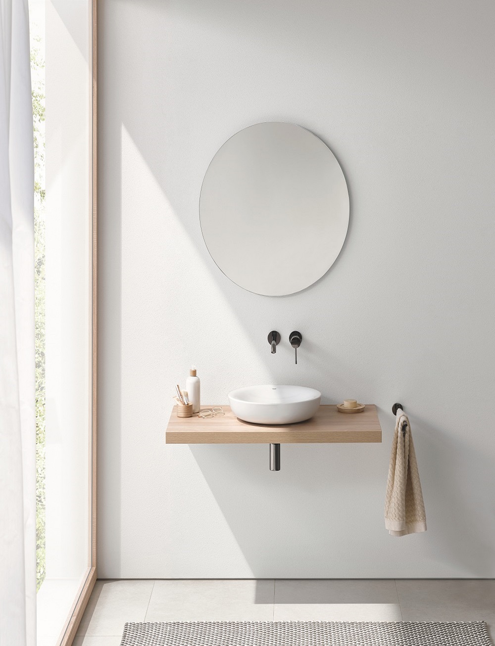 GROHE Essence offers three sizes of vanity basins which feature a new positioning of the overflow which now sits opposite the tap – or in some cases has been removed altogether – whilst the stylish ceramic drain caps help to deliver that highly sought after, uninterrupted aesthetic. When specifying GROHE Essence or any of GROHE’s ceramic ranges, there is already a tried and tested brassware solution to match it. GROHE’s R&D team have developed the PerfectMatch philosophy, and spend months rigorously testing various tap and sink pairings to find those that deliver perfectly, in both form and function. GROHE Essence ceramics beautifully harmonise with Atrio, Essence, Plus and Lineare brassware ranges, as well as the Euphoria SmartControl shower system and GROHE shower trays, offering designers fully coordinated designs that span brassware, flush plates, accessories and ceramics, all from one single source.