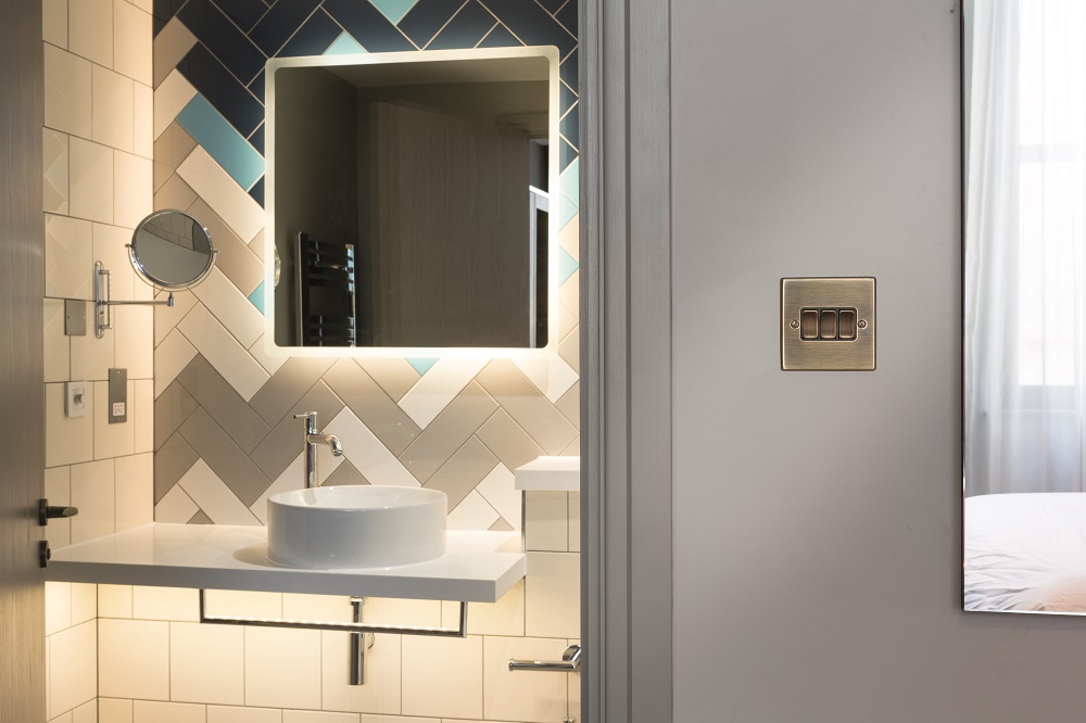 Working with electrical contractor Kier and local wholesaler Evans Electrical, Hamilton’s sleek and stylish Hartland collection of box-fix decorative wiring accessories were selected for the 122-guestroom hotel.