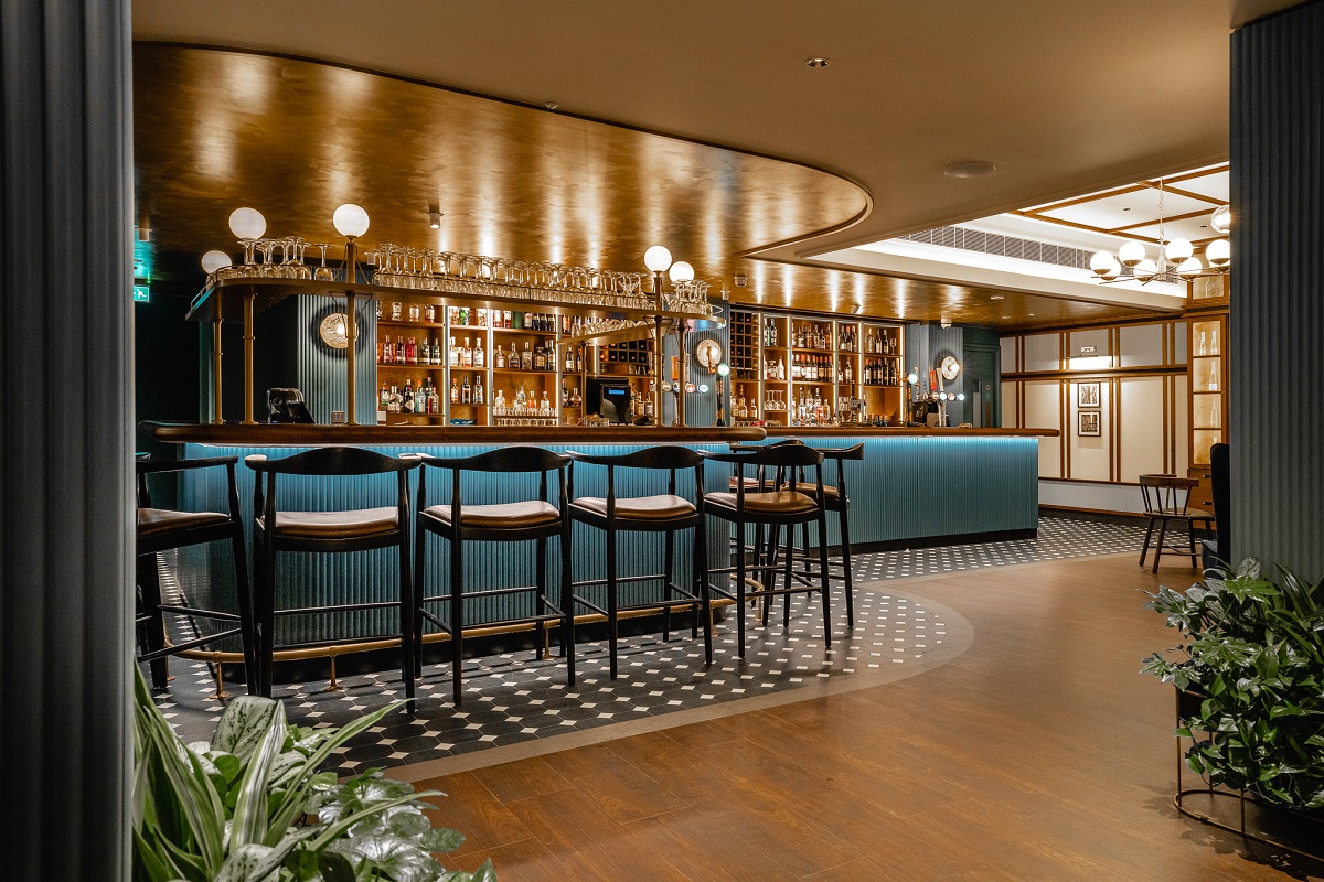 Located within the extension, The Market Kitchen, the largest of the three restaurants, takes its design cues from the traditional kitchen garden. Inspired by a working pantry, a calming colour palette is balanced with citrus-patterned upholstered chairs and floral wallpaper adding bursts of colour to the room. Dressing details layer the space – particularly the main server framed by hanging utensils and copper cook ware – all creating a bright and refreshing restaurant for guests to enjoy their dining experience within. Meanwhile, the Brassey Bar conveys the history of another former owner of the estate, Thomas Brassey who created most of the world’s railways within the 19th Century. His love of engineering is illustrated through industrial forms, patterns and materials such as dramatic beamed structures, metal detailing, intricately patterned tiling and bespoke artwork and dressing.