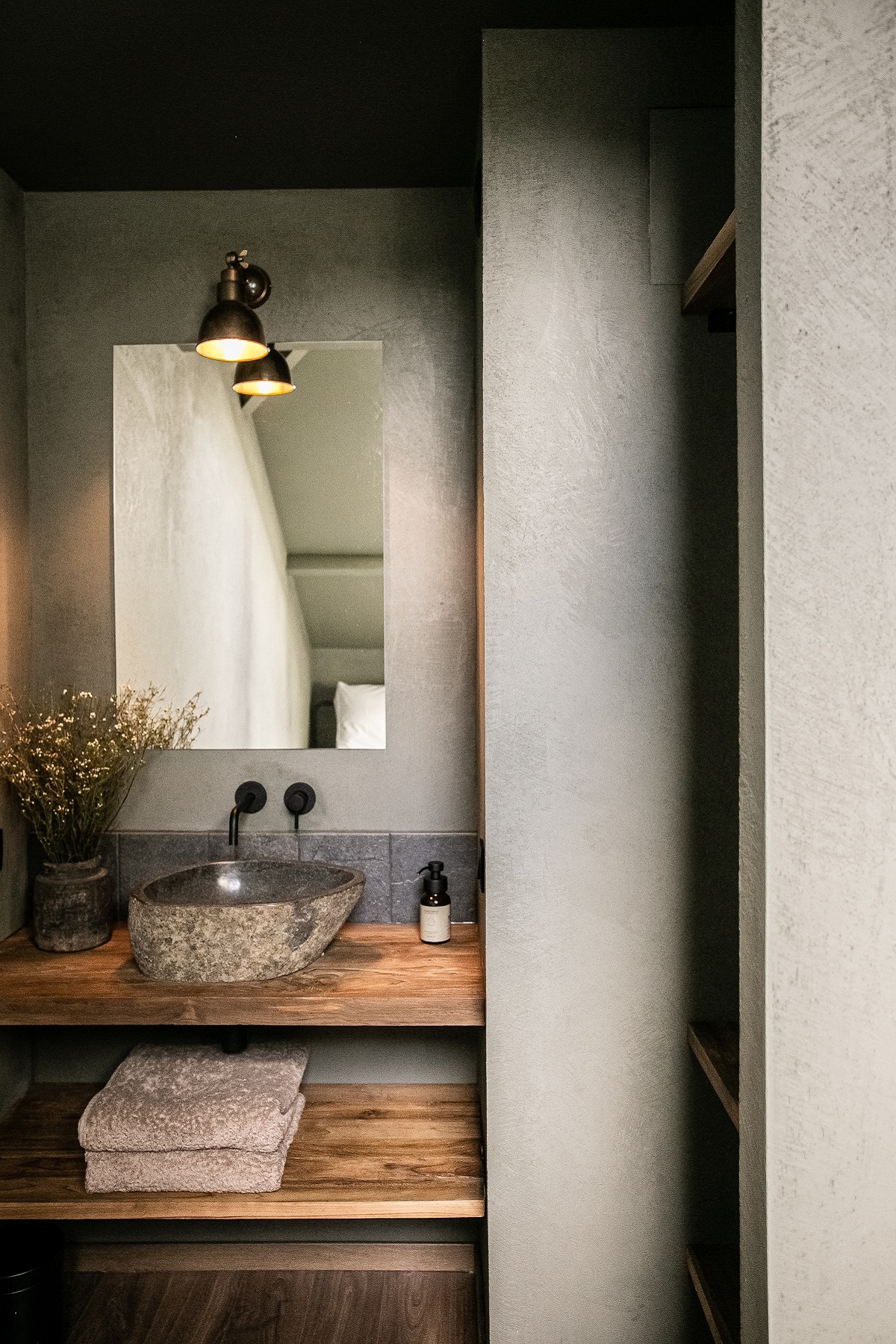 The forest is the main character in this story of beauty, comfort and serenity. It is amongst its storied, toweringly graceful trees, that the cottages nestle. Within this ecological sanctum sanctorum, as soon as a guest steps over the threshold, they are ensconced in their own bubble of peace – privacy is guaranteed under the canopy of the trees. Next comes the internal harmony of soft and structured materials at play; the gently smoked wooden beams gracefully stand alongside the soft hush underfoot of the natural woven rugs – at every glance and felt touch, through texture, colour, and choice objets, inner nourishment is offered up to the guest.