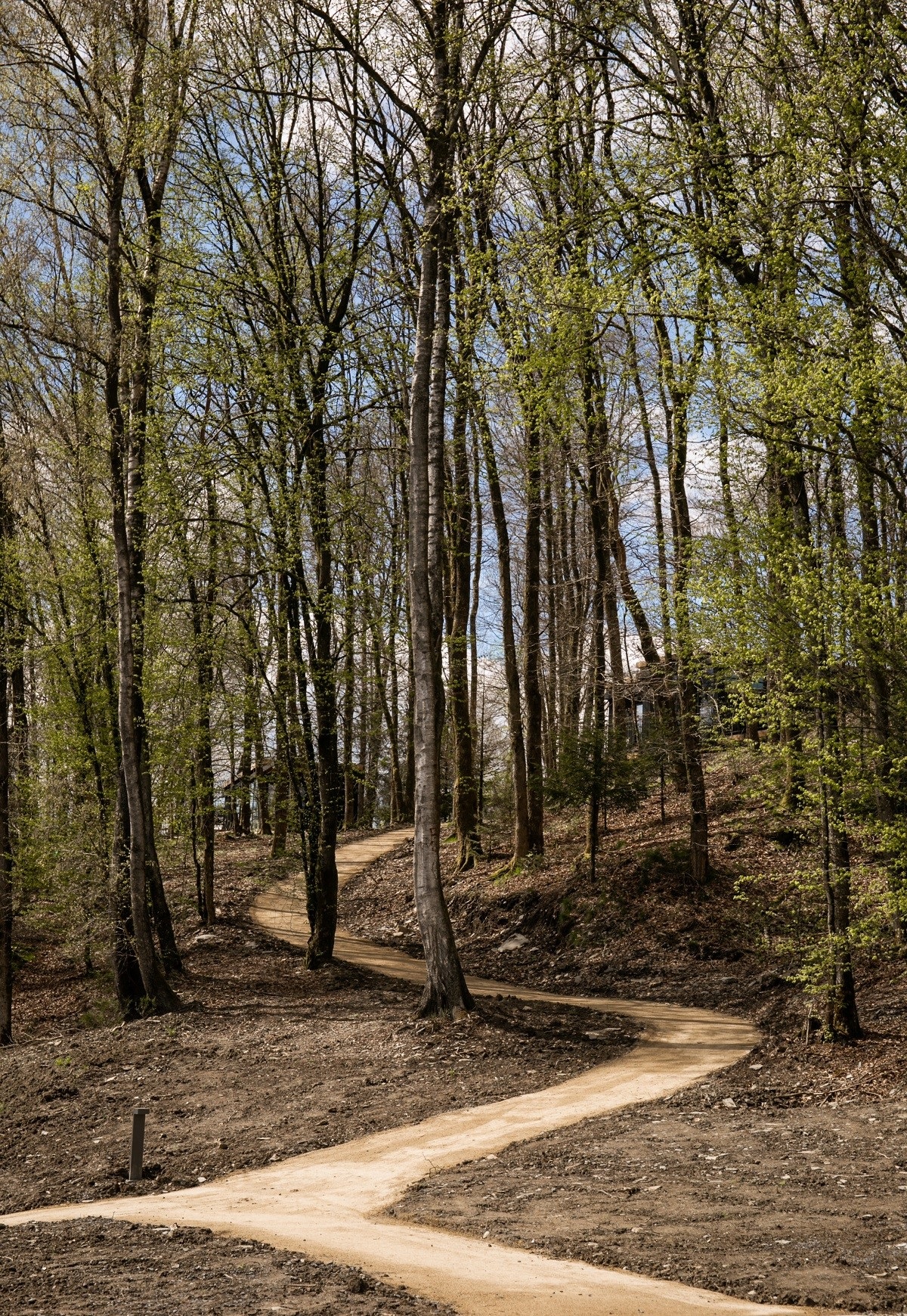 The cottages are powered by renewable energy, owing to the solar panels used throughout, and the site employs circular design in its harvesting and reuse of water, an engineered design to ensure that the cottages exist in harmony with the forest. With this project so many firsts are achieved – it is the first of the Studio to create a full world in itself with circular, sustainable design enfolded throughout; it is the first to be in the forested heart of Dohogne’s native home – Belgium; a coming of home of sorts, but a home more akin to a tranquil haven.