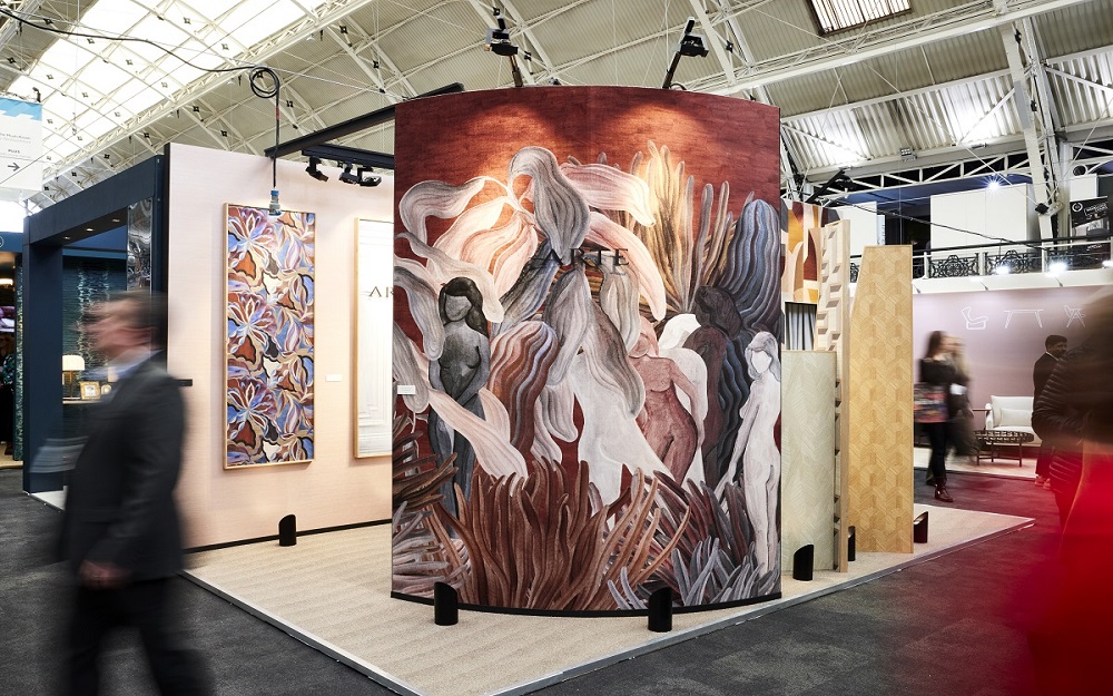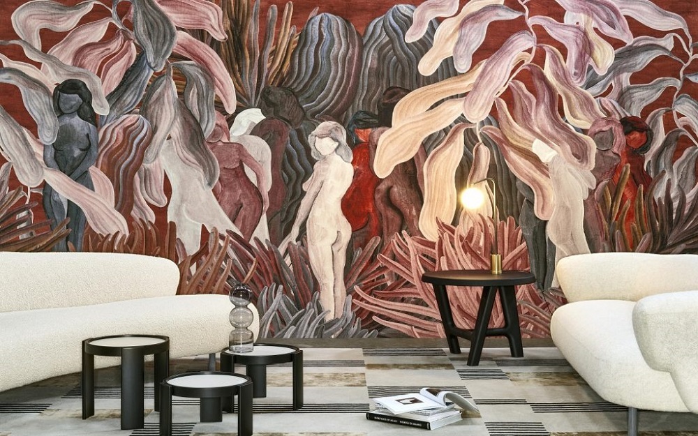 Speaking about the personalisation of design-led spaces, the surface designs by Arte made a strong statement in trend and colour direction, combining both in its striking Secret Silhouettes design, printed on chenille in rich colours, more artwork than wallcovering.