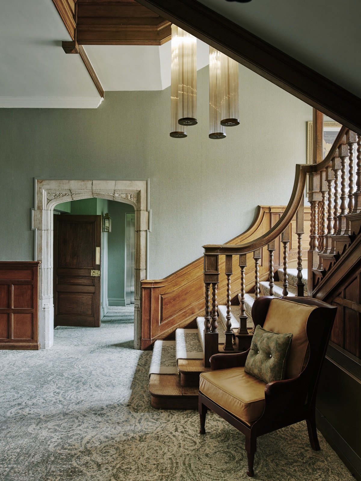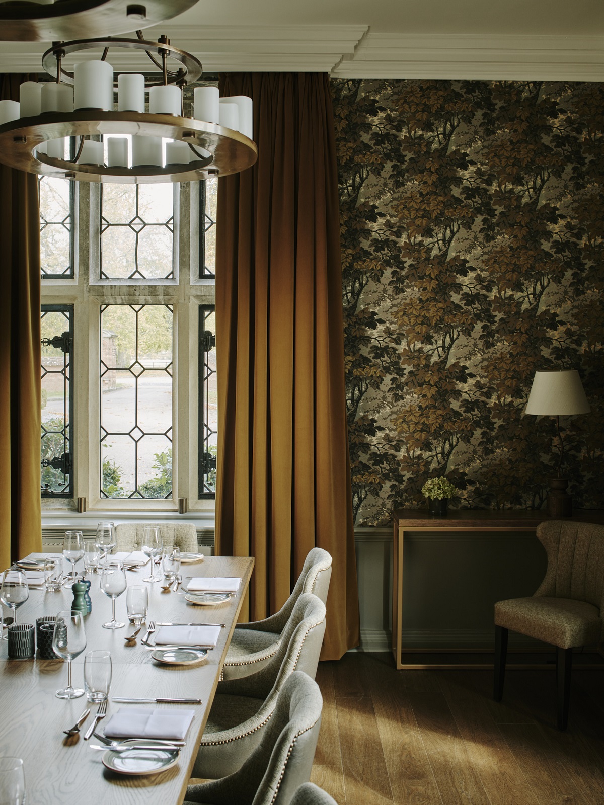 Teaming up with leading lighting designers Imagine Global and Lightique, lighting installation throughout the hotel provides several focal points. Signature chandeliers have been carefully dotted in the Manor, inspired by the traditional 19th-century heritage lighting found in many stately homes. A statement piece hangs above the Manor’s feature staircase – this show stopping three-tier chandelier is made from steel with a plated finish and features smooth and ribbed glass tubes.