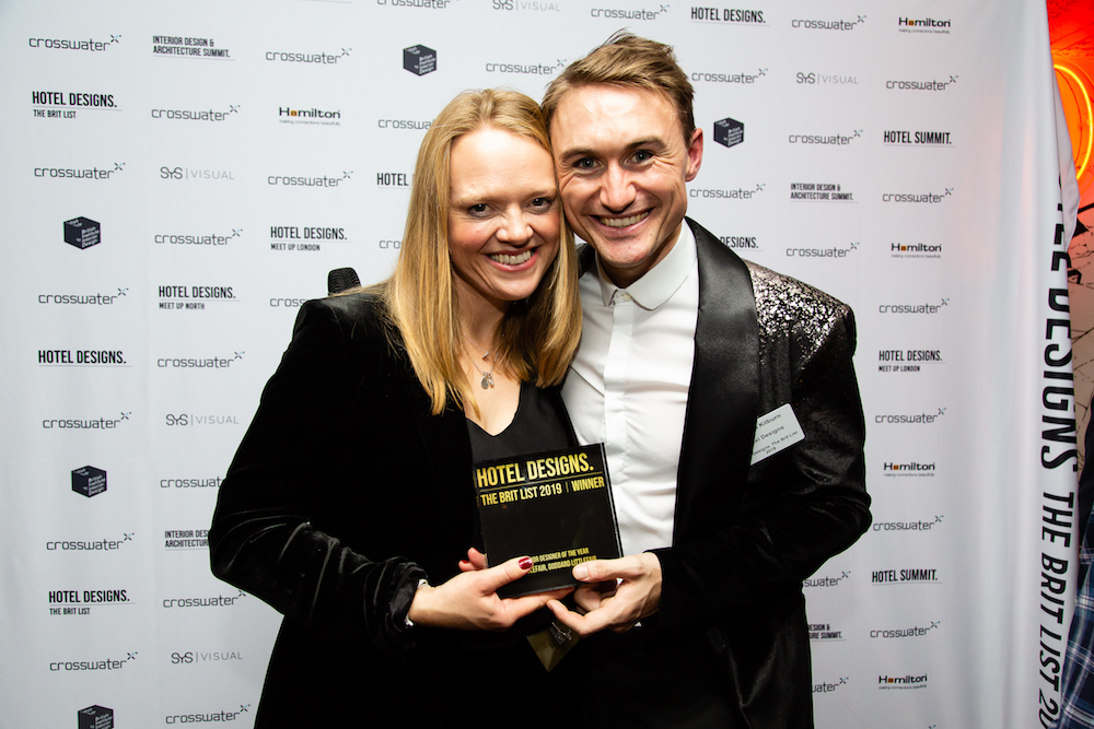 - Image caption: Interior Designer of the Year, Goddard Litterfair’s Jo Littlefair with editor Hamish Kilburn at The Brit List Awards 2020
