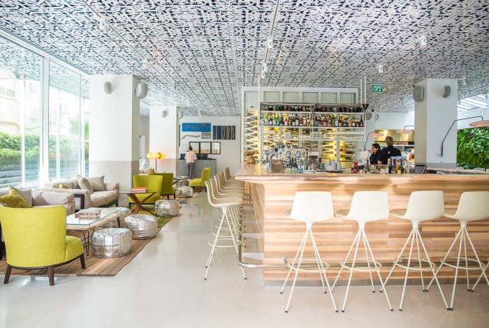 By opening up the public spaces to become a flexible social hub, the hotel becomes a place that nurtures human connections, and through the use of subtle levels creates touchable distance between each functional area. “The idea is that the energy descends into the unconventional pool area,” adds Baranowitz. “As you move up levels, the lobby/lounge area becomes more reclined, but the open architecture scheme allows for a clever connection between all spaces.”
