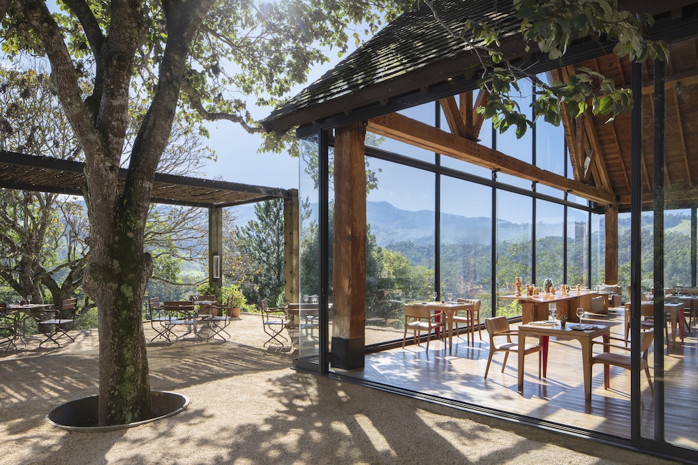 Mina, the resort’s signature restaurant, offers modern, contemporary Brazilian dishes and 180-degree views of the mountains and valleys, with the suspended fireplace warming the dining room and rich wood floors underfoot.