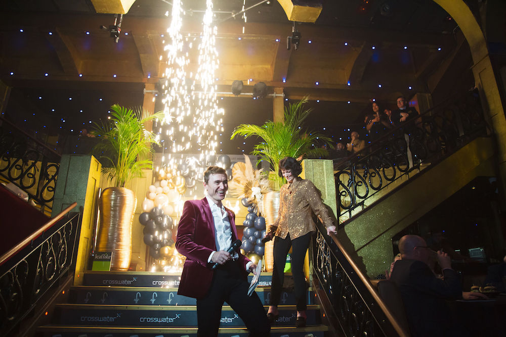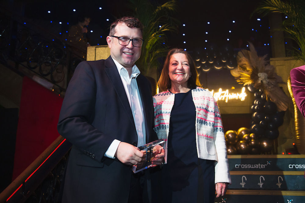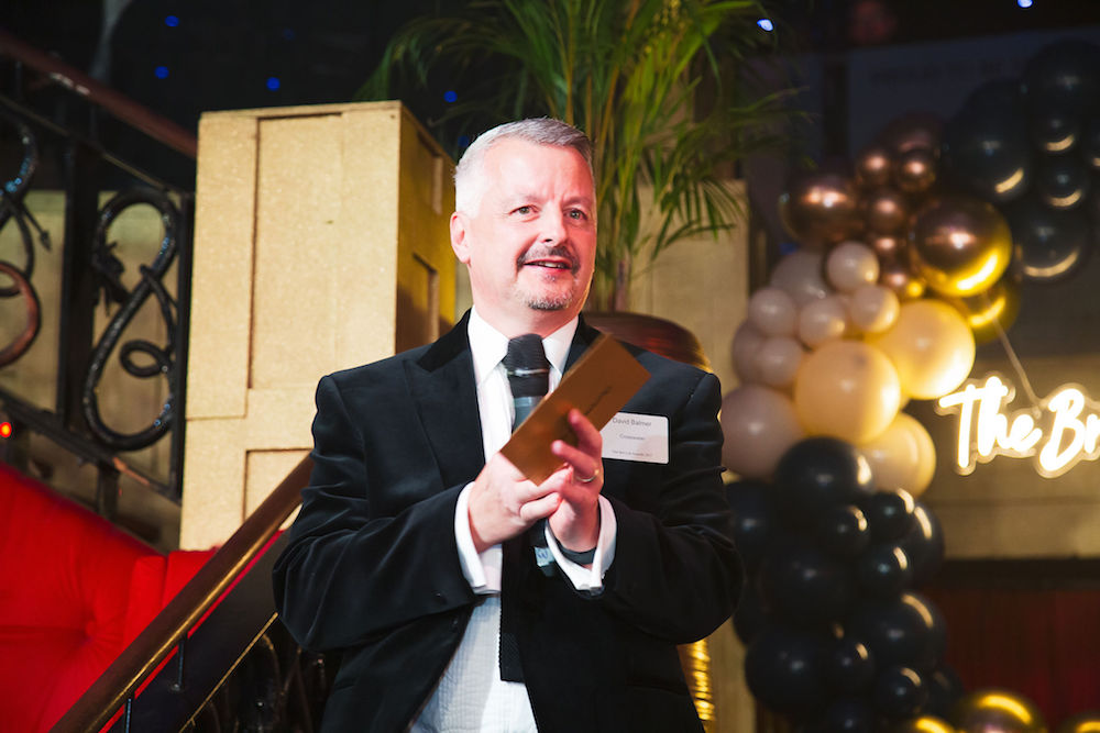 - Crosswater’s David Balmer presenting the award for Outstanding Contribution to the Hospitality industry