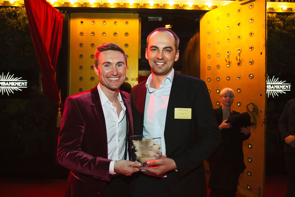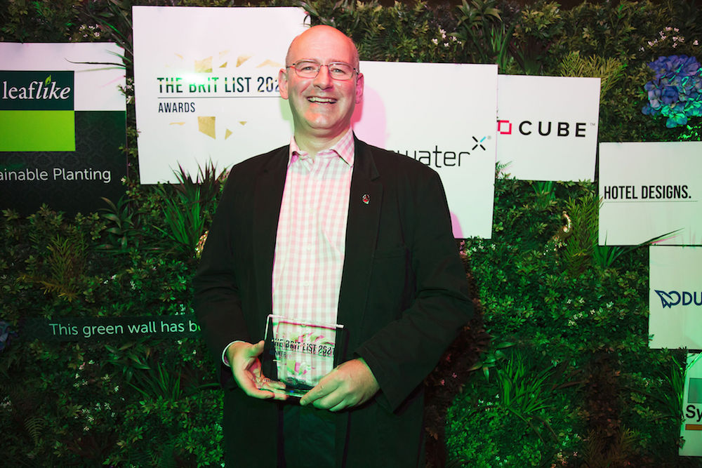 - THE PIG Hotels’ Robin Hutson accepting his award for Hotelier of the Year from GROHE’s Karl Lennon