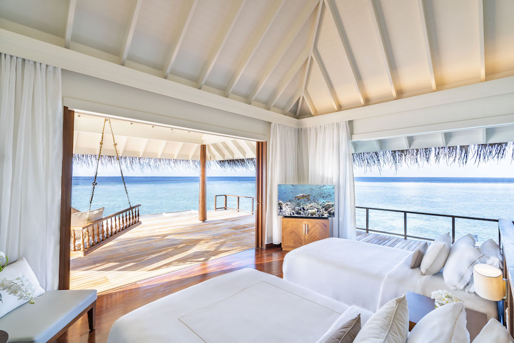 Each overwater residence is generously spaced at 1,500 sq. m. and comes with the addition of a new fully equipped gym, a couples’ spa treatment room, a fully equipped professional kitchen with wine fridge, expanded outdoor decks and larger swimming pools. This follows a multi-million-dollar redesign of the two-, three- and four- bedroom beach pool residences in 2020 just before lockdown, with the four-bedroom residence at a commanding 2,000 sq. m.