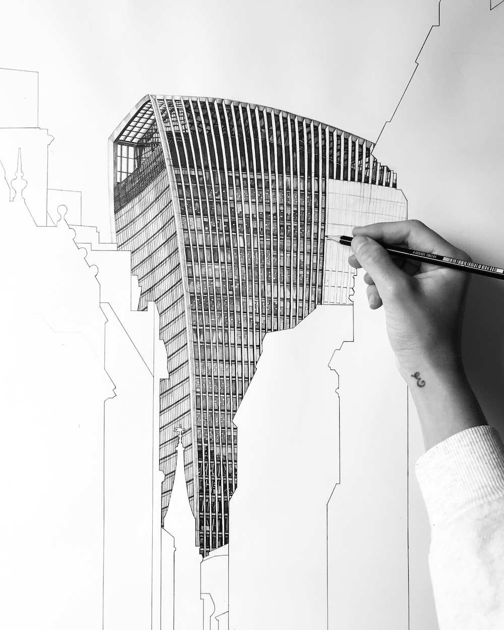 “Elegant Clutter wanted to capture London’s personality in two pictures that travellers from around the globe could relate to,” the artist explains. “So, I was asked to draw St Pauls which I have done many times and the Walkie Talkie, which was a first and a building I wouldn’t have thought of drawing if it hadn’t been for this commission. The two illustrations convey the classic and the contemporary side of London perfectly.”
