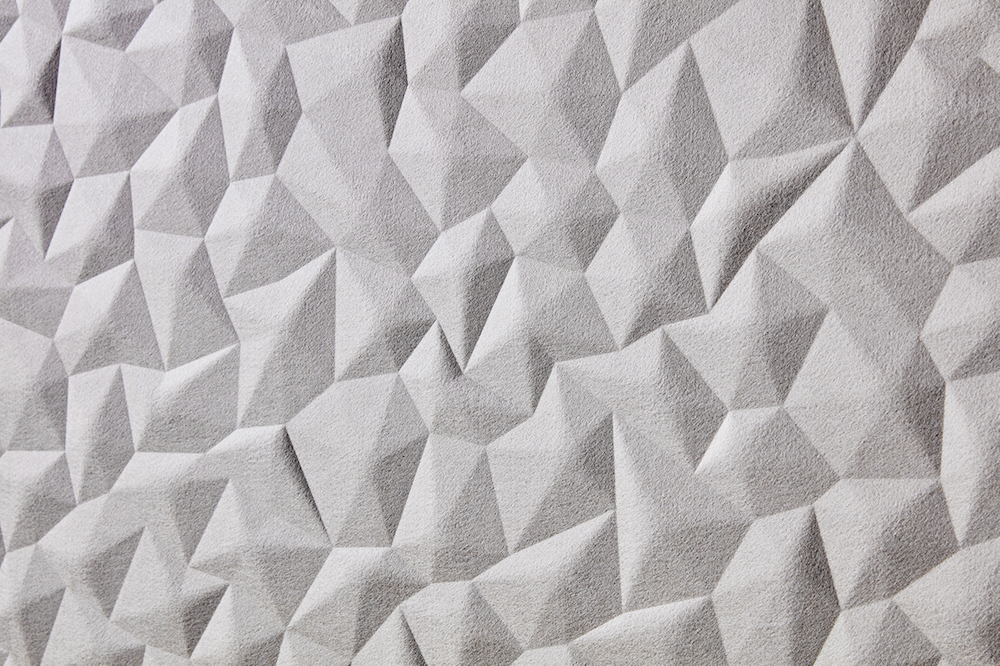 ION is comprised of 100 per cent PET which is 60 per cent recycled with a recycled non-woven backing and a coloured surface Mura (non-woven wallcovering) which is embellished with a compressed face. Dimensions of 2800mm high by 1130mm wide, allows the back of the panel to remain flat for ease of install for floor to ceiling applications. ION has been trimmed with a straight edge on all four sides to allow for an almost seamless finish and pattern match for continuous wall and double-height application. This allows ION to have the ability to be installed top to bottom as well as side by side.