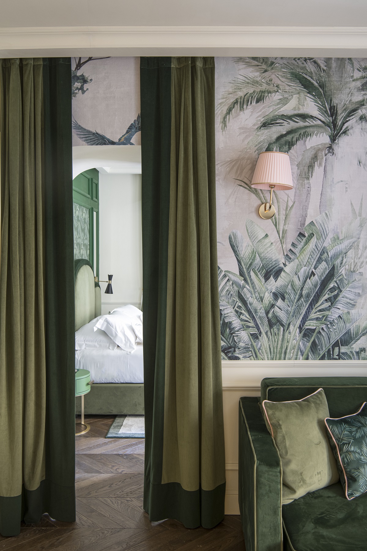 The interiors have been created to pay homage to the city’s stunning Cathedral, with the hotel’s eye-catching aesthetic drawing inspiration from the ’Duomo’s’ distinct colours and sculptural design elements. La Gemma Hotel’s interior reflects the beauty of the famous cathedral with a palette of vibrant greens, powder pinks, and gentle ivories alongside bold geometric patterns, opulent marbles, sumptuous textiles, and bespoke furnishings.