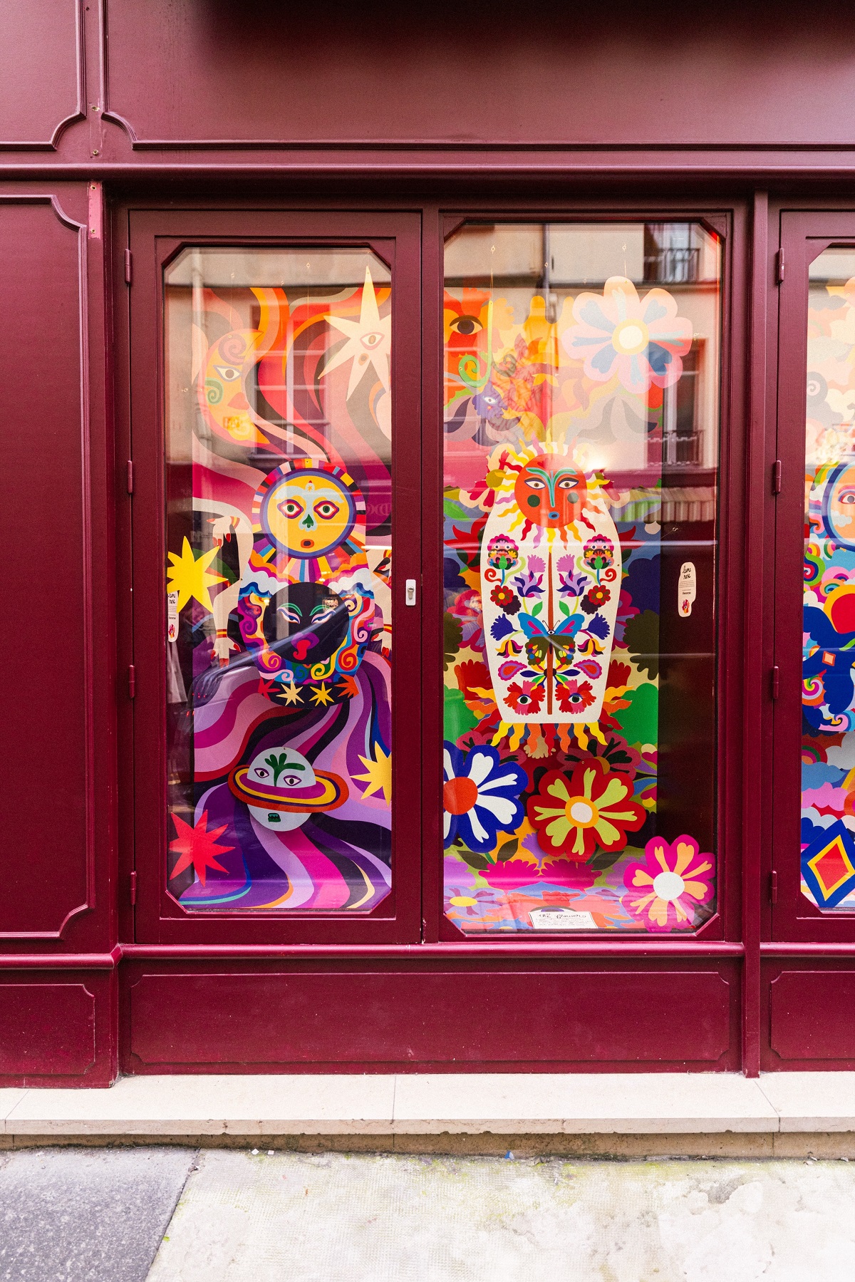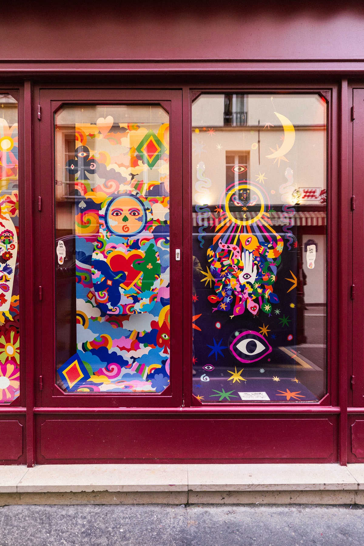 The current collaboration is with the artist-painter Leona Rose. The contemporary artist presents an immersive exhibition to be discovered in the hotel’s windows, visible from Rue de la Verrerie. Starting from February and lasting until April, passers-by in Le Marais will be able to journey into the world of Matryoshka dolls.