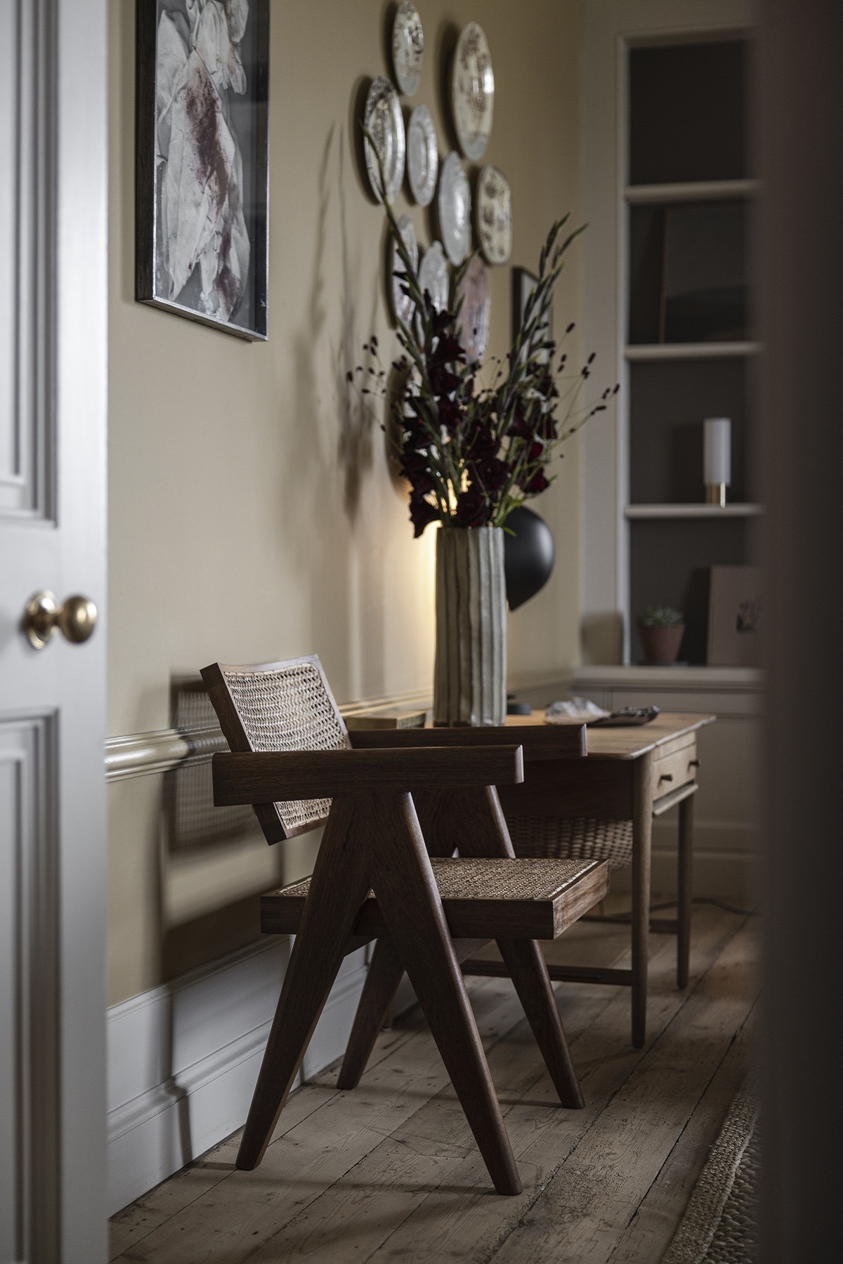 Slipper bathtubs are artfully placed in pools of light by the window lo facilitate further viewing. King size beds are adorned with neutral tone throws, while copper light fixings add to the Scandi style. Pops of colour come from vintage chairs, generously re-upholstered in emerald-green, burgundy-red velvet or indulgent cream.