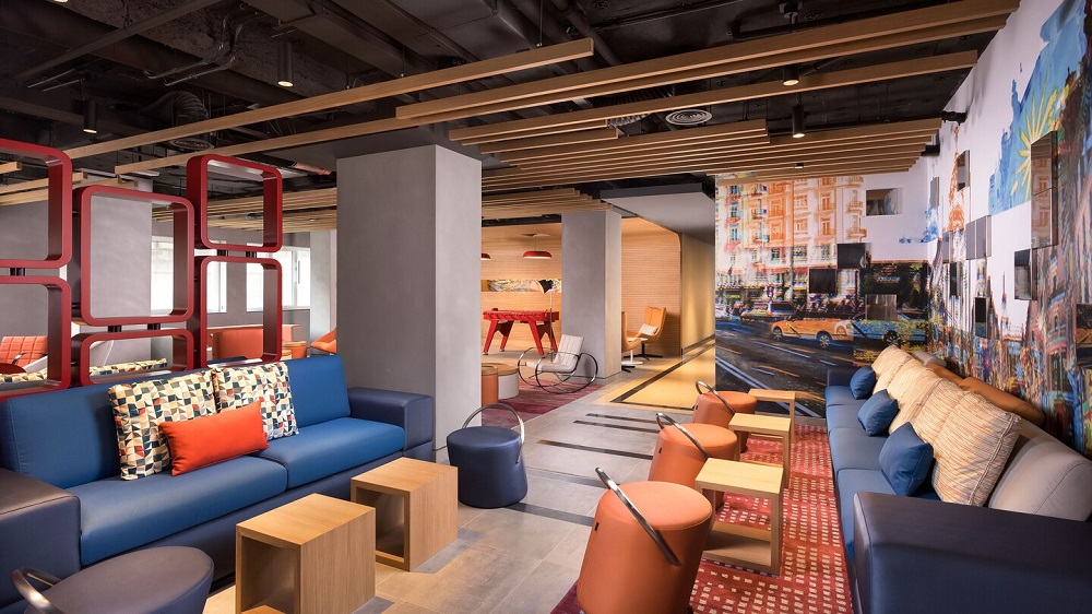 Staying true to its roots as an innovative incubator brand, Aloft Hotels, in partnership with the Rockwell Group, developed a cohesive design strategy for Aloft Madrid Gran Via that draws on the sense of humor and the vivid color story the brand is known for. In a nod to the brand’s focus on tech and bold use of color, the property’s free-flowing design embraces the “glitch” design trend to aestheticise digital or analog errors, materialising in design details from distorted city art throughout the public spaces and guestrooms. The always-on, buzzing communal areas reflect the eclectic spirit of the city and respond to the needs of the modern traveller, allowing guests to seamlessly transition between work and play.
