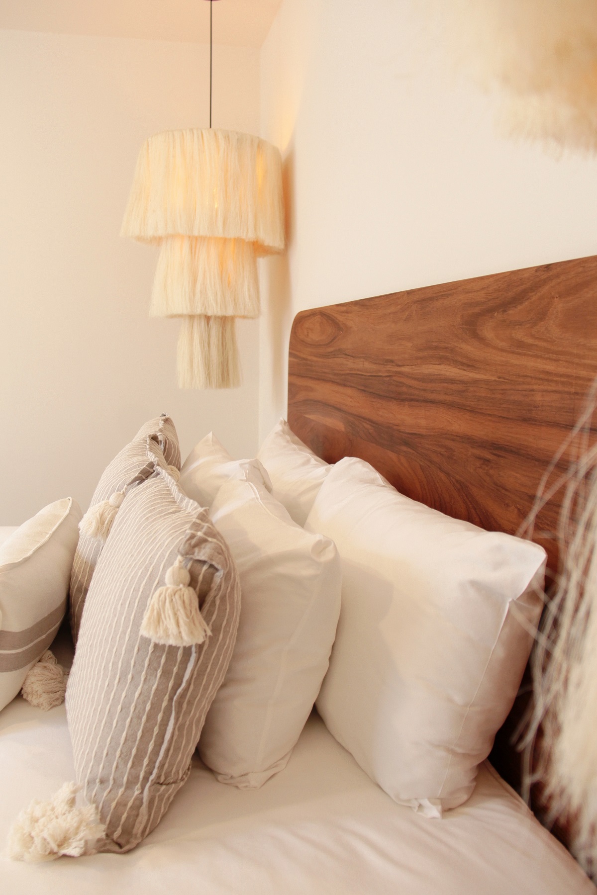 In its 14 guestrooms, arranged over two floors, the design aesthetic is developed as a continual dialogue between form, function and roots. In the guestrooms light tones are imbued with natural light, thanks to the large windows opening up the space. The rustic accents in textiles, furniture, lamps from Asia along with other detailed pieces such as the tivichi—an animal-shaped cushion made in the Valley of Oaxaca—invite guests to appreciate craftwork as the luxury of this era.