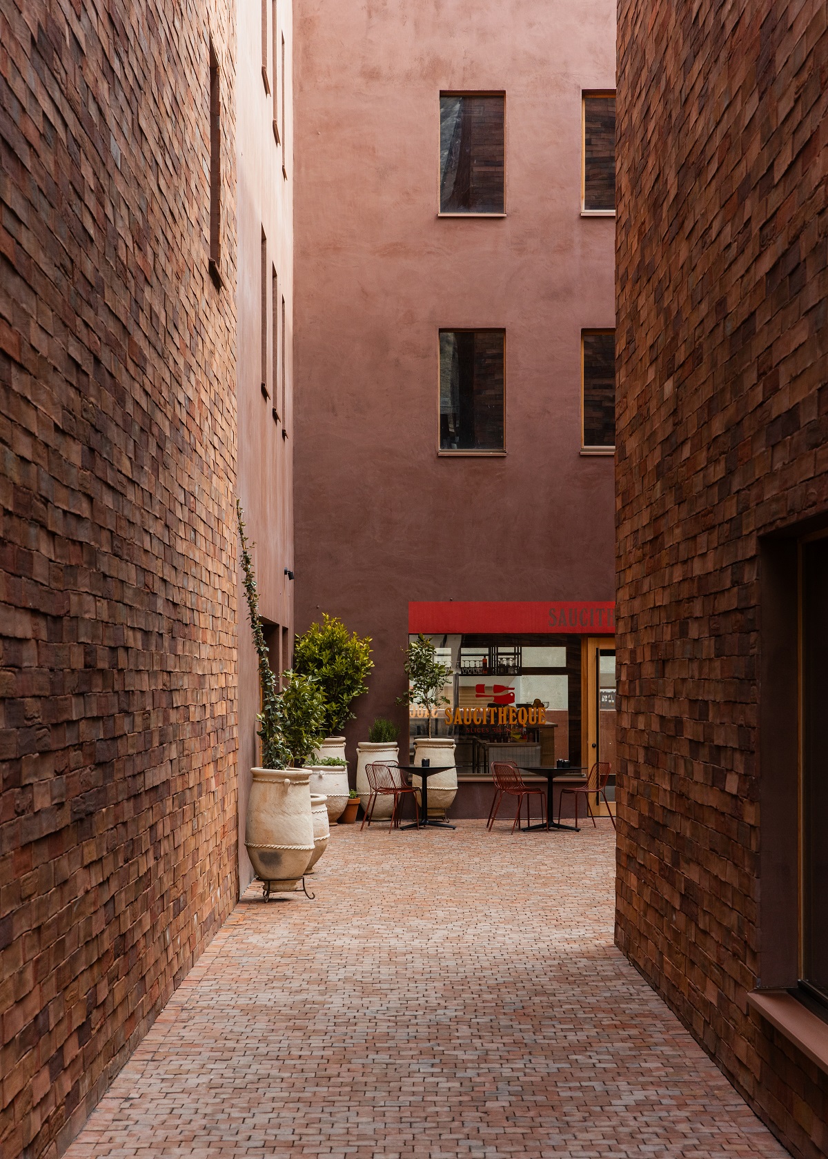 Below ground, the original borsaris have been transformed into Les Bains Publics – Roman-inspired thermal baths made from red concrete that evokes the colour of wine. Occupying 2,000 square meters, the baths are a sanctuary of relaxation and digital detox, with a strict code of conduct and a limit of 30 people at a time. There’s no Wi-Fi, no phones, just the serenity of a ‘cathedral of bathing’.