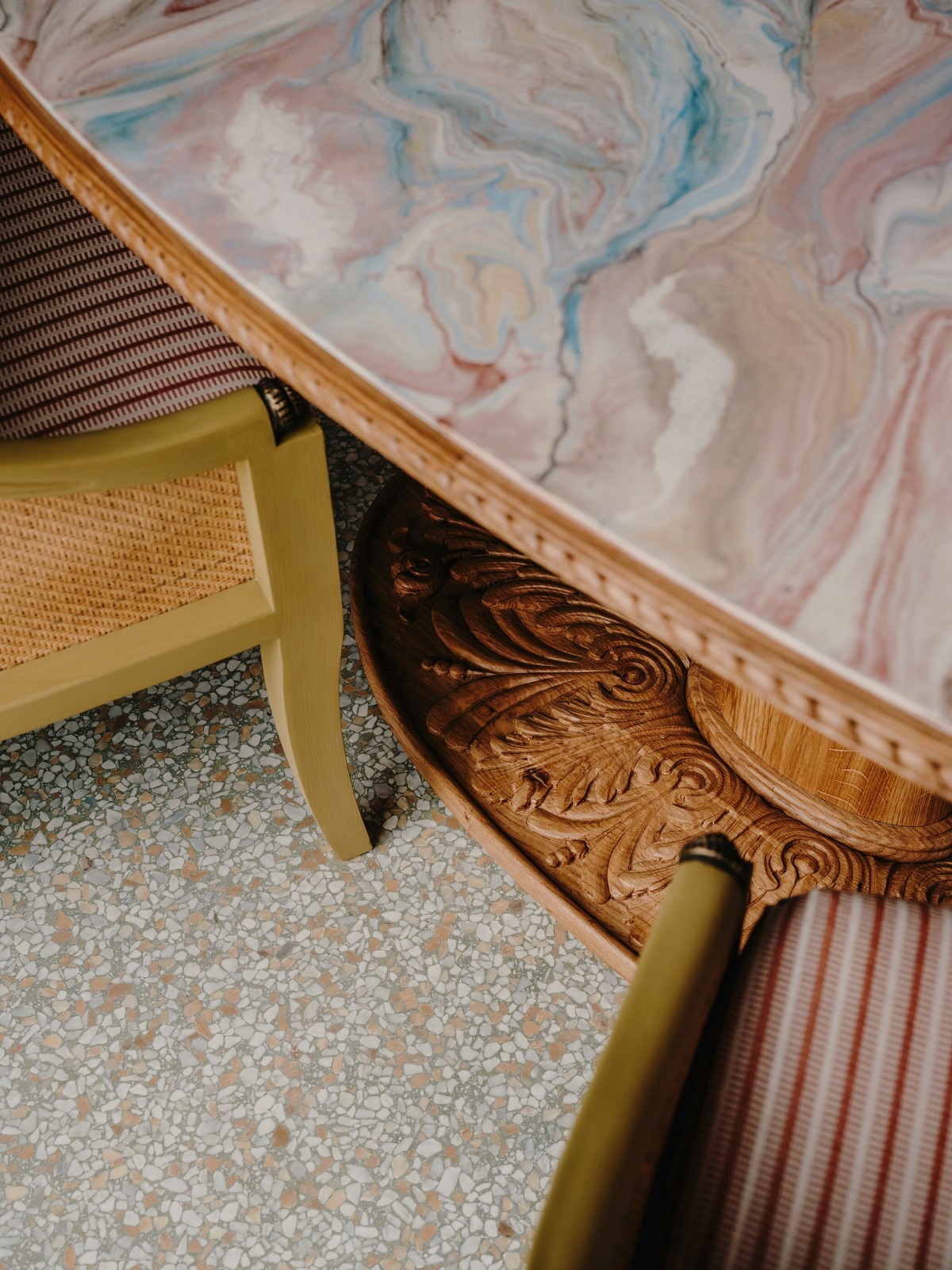 From the moment guests step into Splendido’s newly reimagined lobby, they are enveloped in a timeless sense of place, welcoming them to their home in the hills. A masterful interplay of Ligurian heritage and contemporary elegance is revealed through a wealth of local artisanal pieces – from botanical frescoes to bespoke design elements made in Carrara marble, Graniglia alla Genovese, and locally sourced Lavagna stone. Traditional materials root the renovation in authenticity while elevating the guest experience with a sense of palatial grandeur.